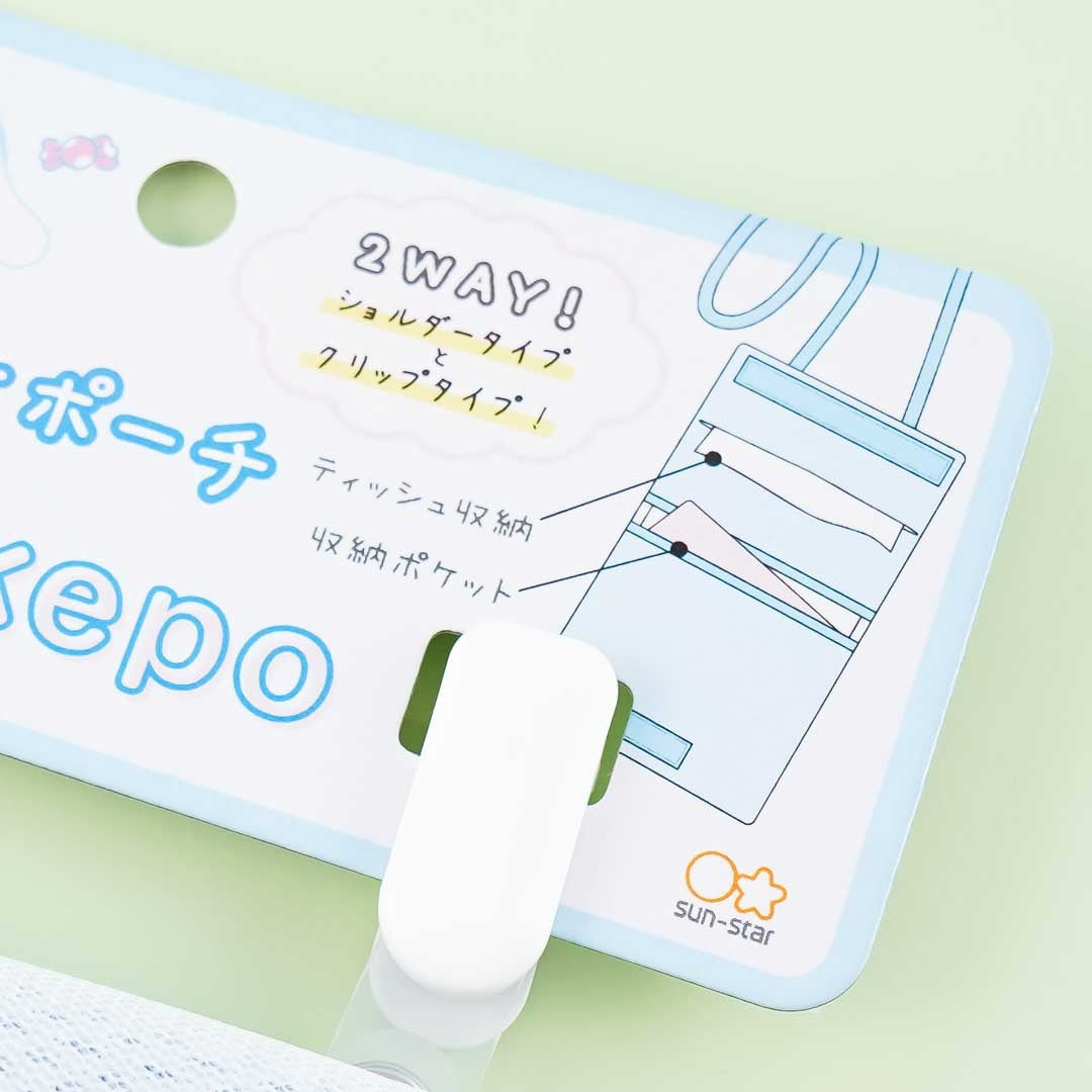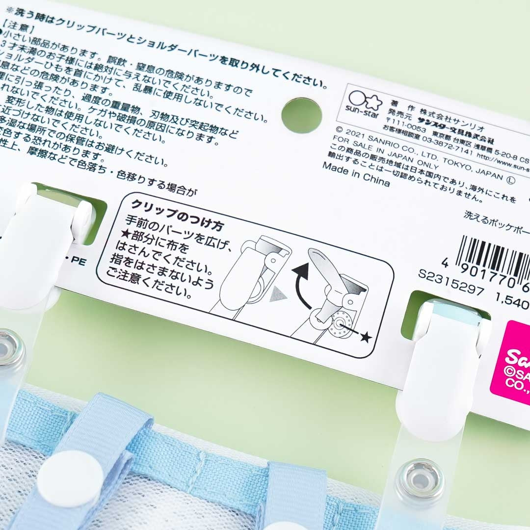 Use this two-way pouch either as a mini sling bag or as an instant pocket for your trousers or skirt! It features Cinnamoroll and is made of washable mesh material. Place your tissues or other small items inside its dual slots. It comes with velcro closure, a detachable bag strap, and dual clips so you can fasten it to your clothes!