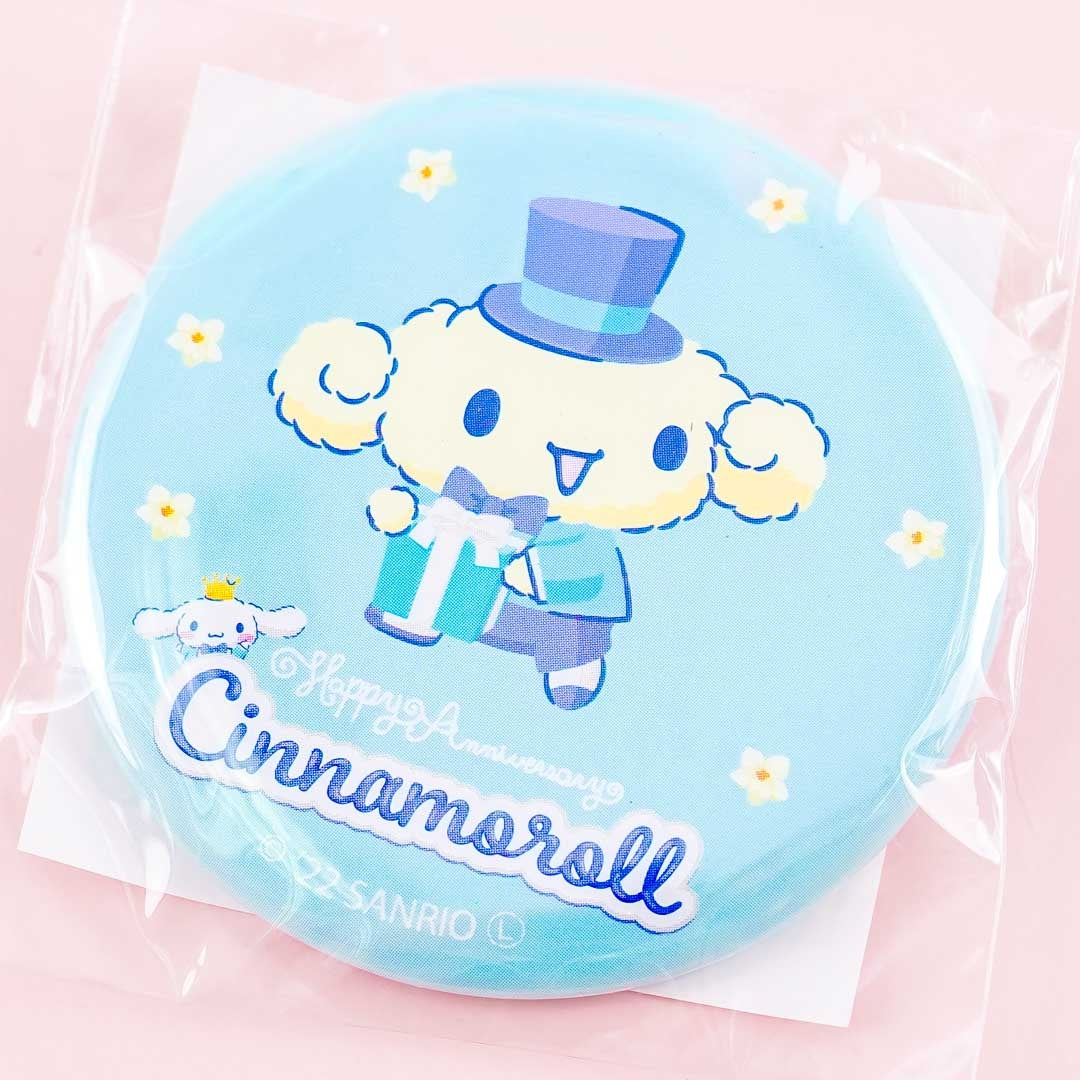 Jazz up your school bag with this pin featuring Espresso holding a gift for Cinnamoroll's 20th-anniversary celebration! This super cute badge is made of aluminum material.