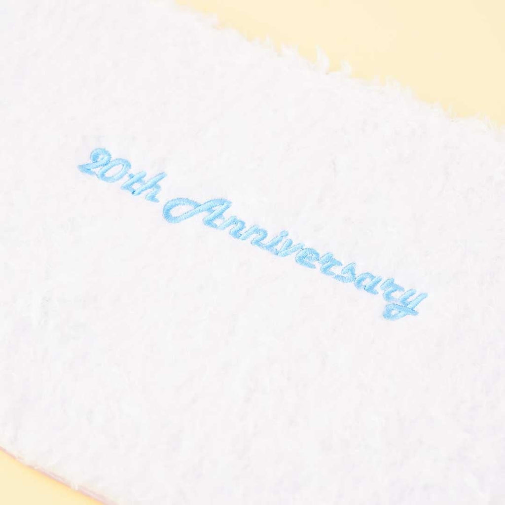 Store your charms inside this super cute zippered pouch celebrating Cinnamoroll's 20th anniversary. It's covered in prints of Cinnamoroll and his Sanrio friends floating among the clouds! This pouch is made of a combination of glossy fabric and fluffy boa fabric. It also comes with a golden ball charm!