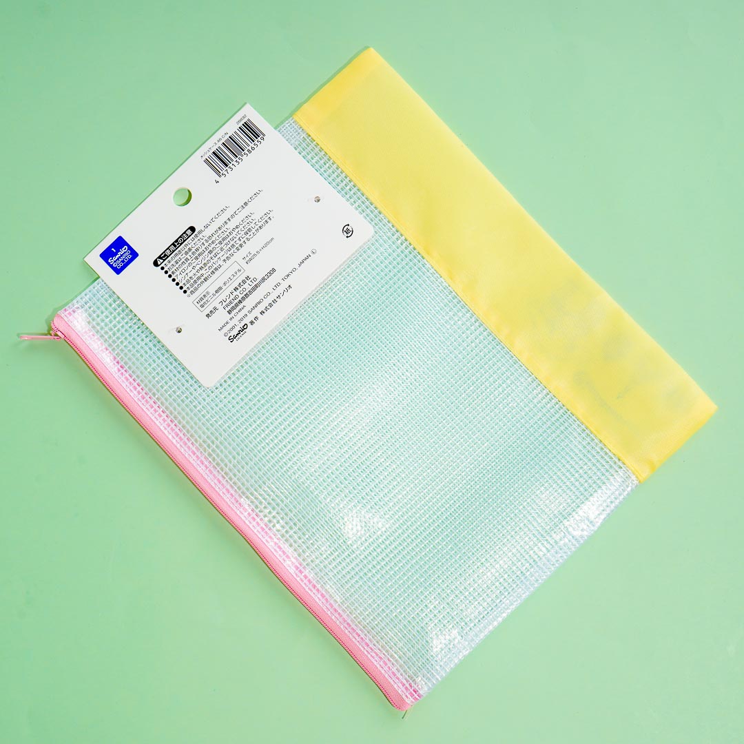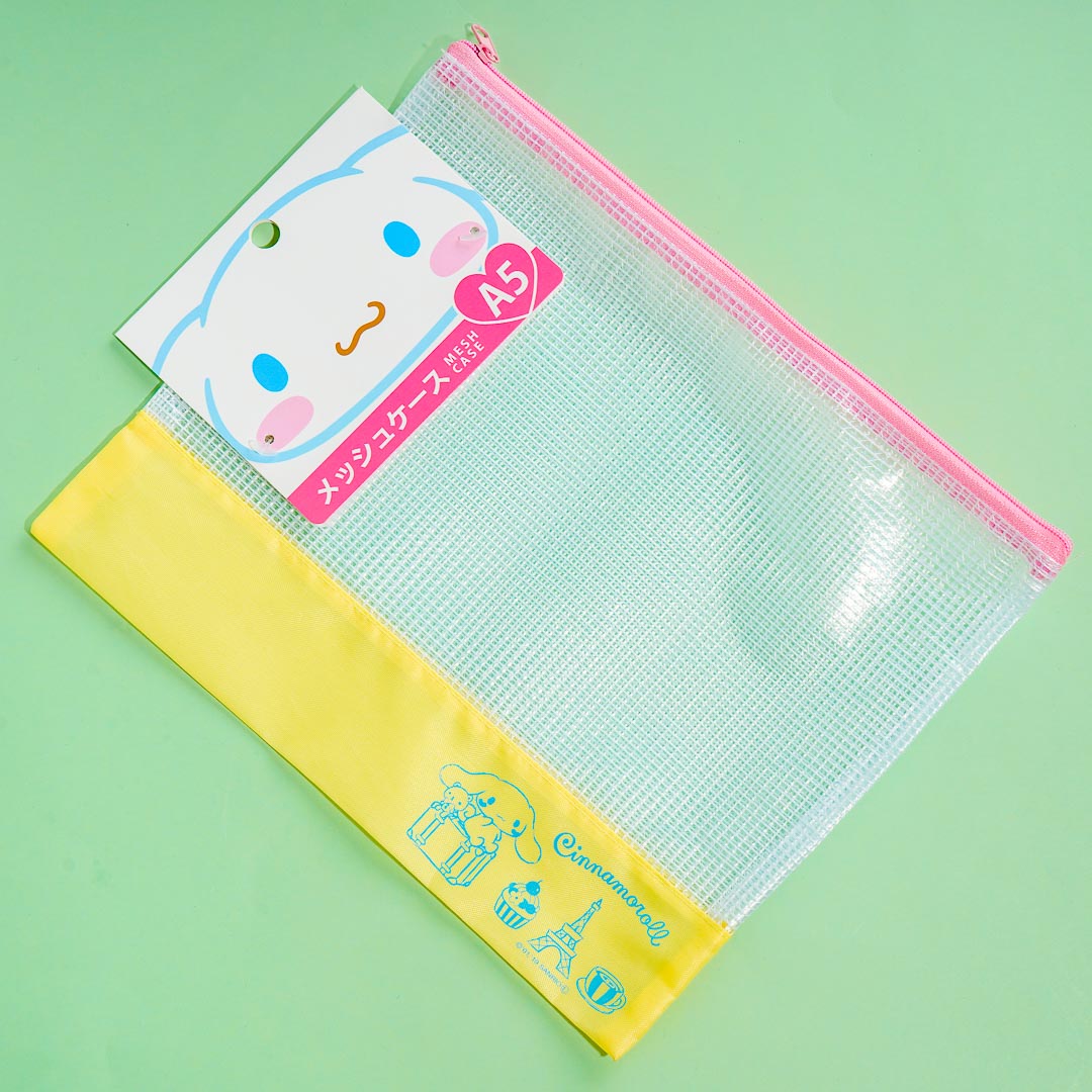 Use this cute zippered A5 pouch to store documents, compact powder, and other things. It showcases a print of Cinnamoroll about to travel! This mesh pouch is semi-transparent so you can see whatever is inside of it.
