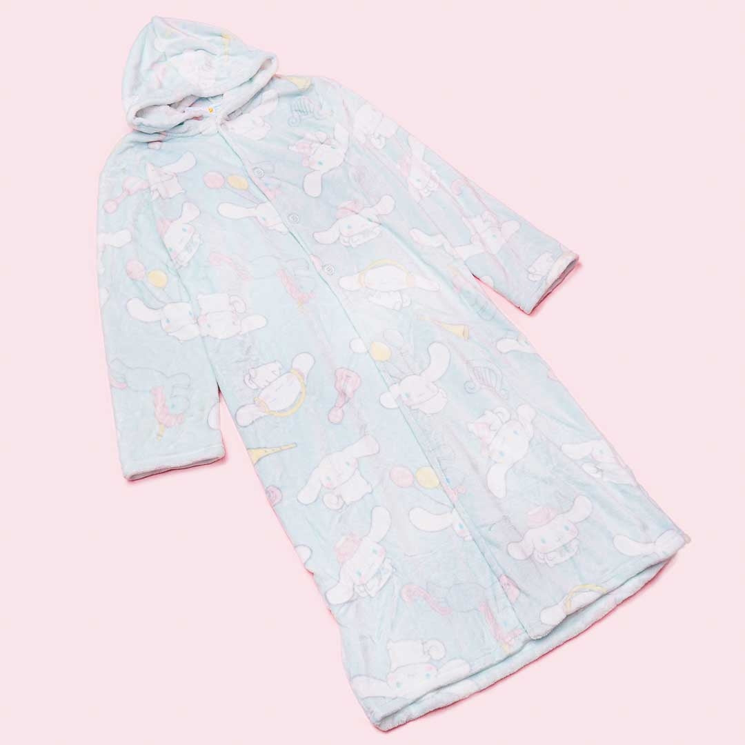 A kawaii large wearable blanket illustrated with Cinnamoroll doing different kinds of activities