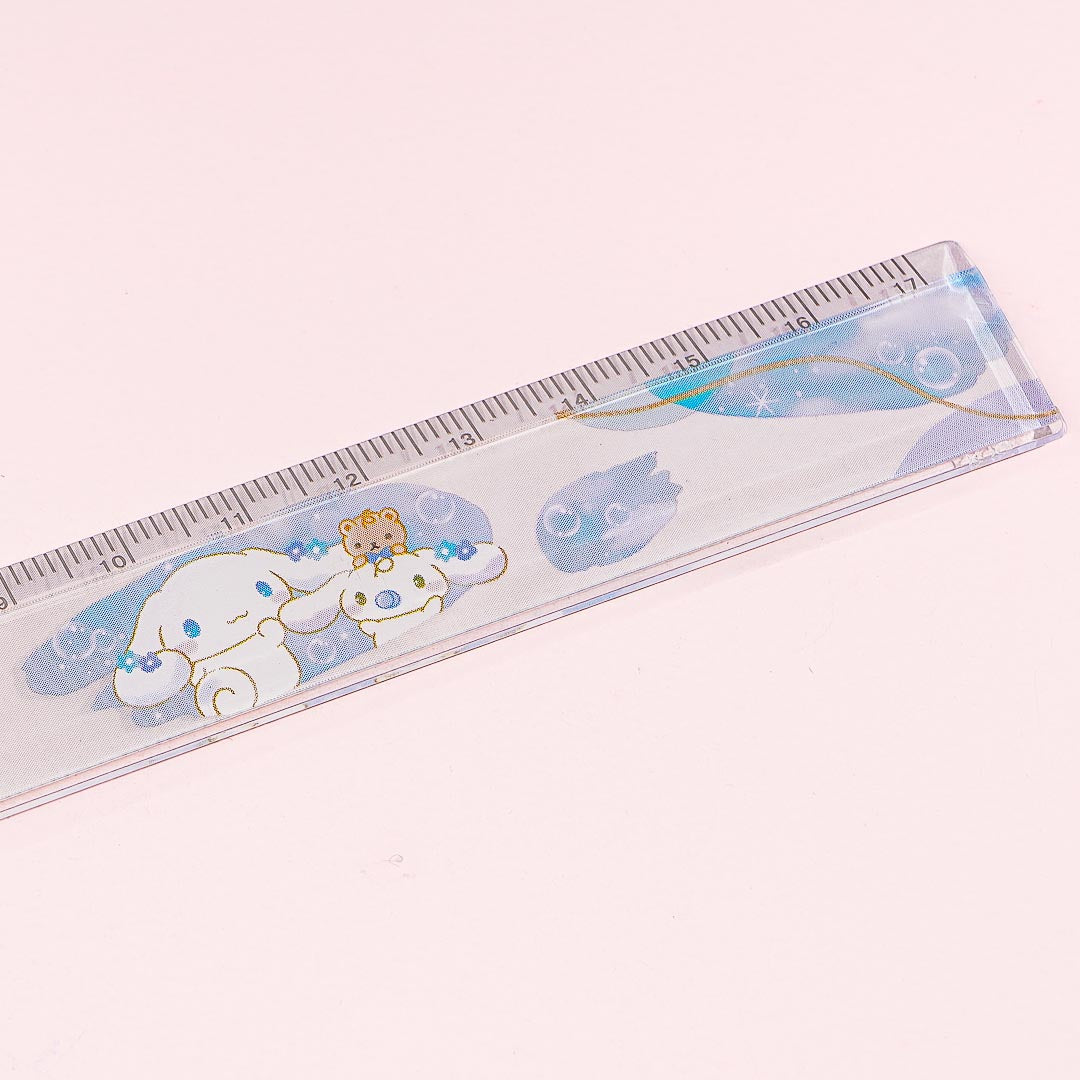 This cute transparent ruler features prints of Cinnamoroll and Milk playing with bubbles. Use it to draw straight lines and shapes!