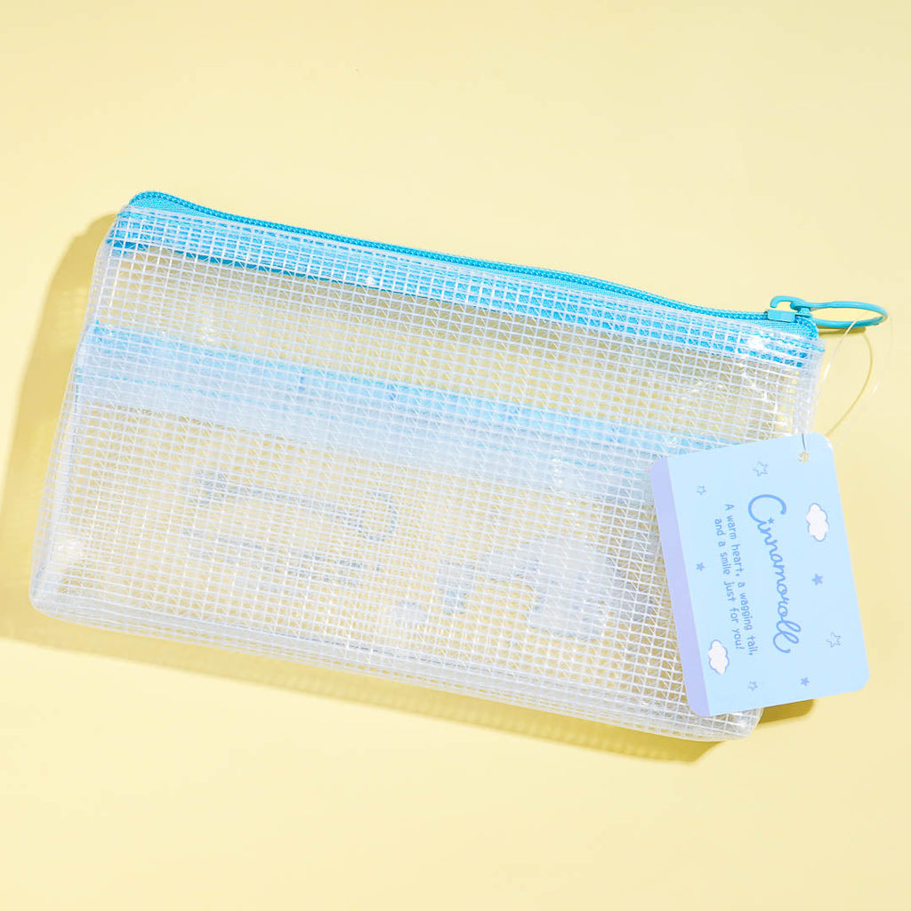 Organize your cards and receipts using this super cute flat pouch! It showcases kawaii prints of Cinnamoroll and clouds. This pouch has two zipper openings — one at the top and one at the front — so you can use which makes it easier to get your stuff! It's also transparent so you can quickly see what's inside.