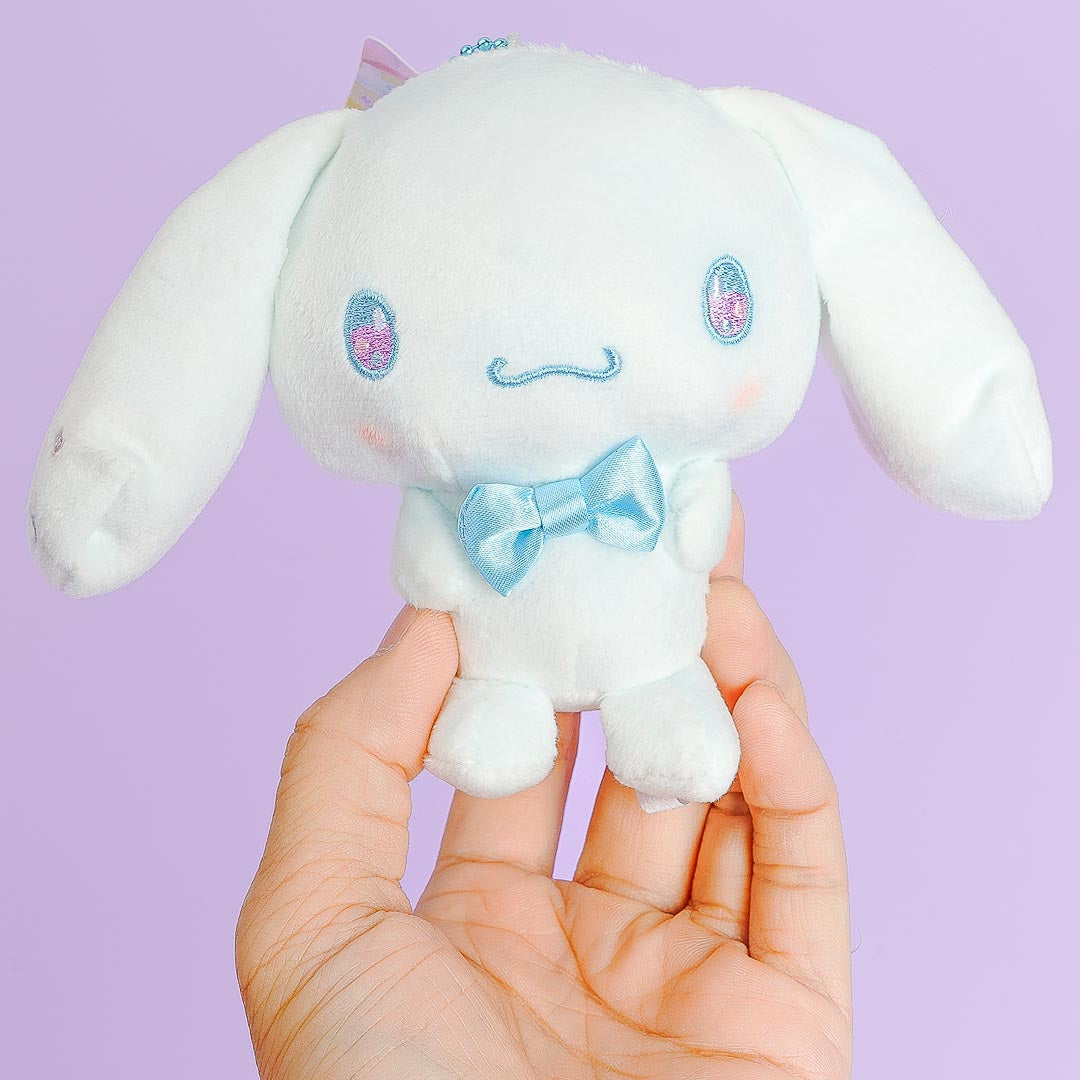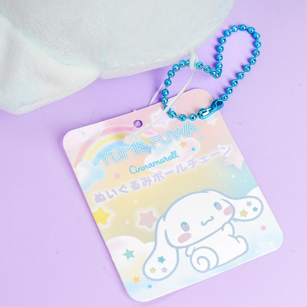 Bring this super cute plushie anywhere and spread kawaii vibes! Cinnamoroll has a "yume fuwa" or light and dreamy design with sparkly star embroidery. You can also attach this to your bag using the ball chain.