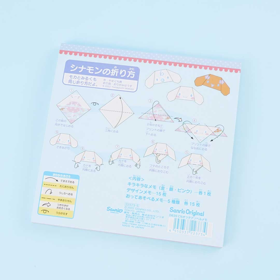 This cute memo pad can be folded into fun character faces, ribbons, and hearts. It showcases Cinnamoroll hanging out with his friends! Use it to write down important notes and reminders.