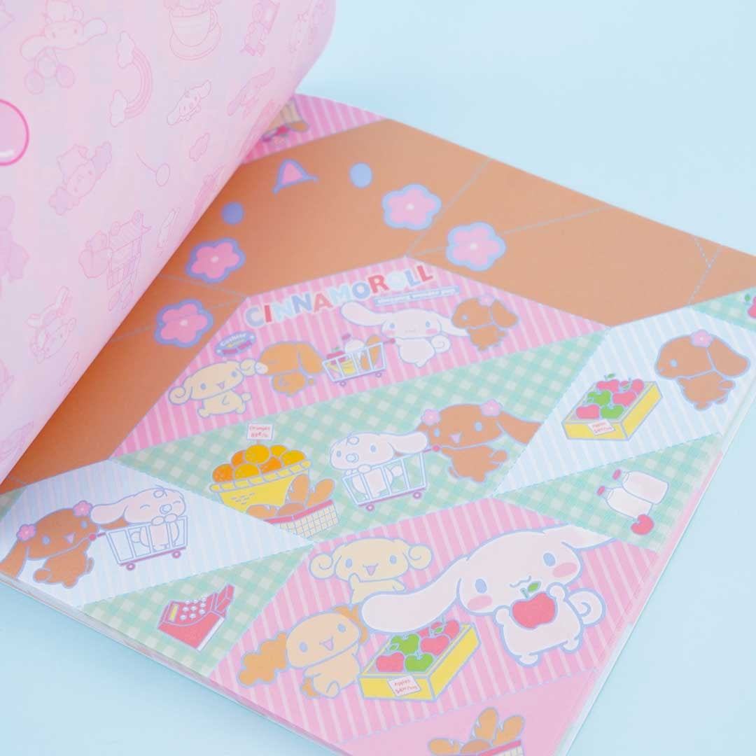 A super cute foldable memo pad illustrated with Cinnamoroll and his friends