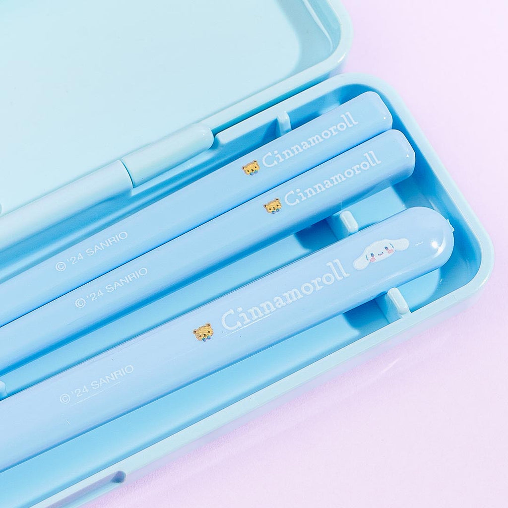 Take this super cute utensil set to your next picnic! It comes with a case that is decorated with kawaii illustrations of Cinnamoroll spending a happy day! Simply open the flip-top lid to take out your reusable spoon and chopsticks. This handy utensil kit has silver ion properties that prevent bacterial growth.