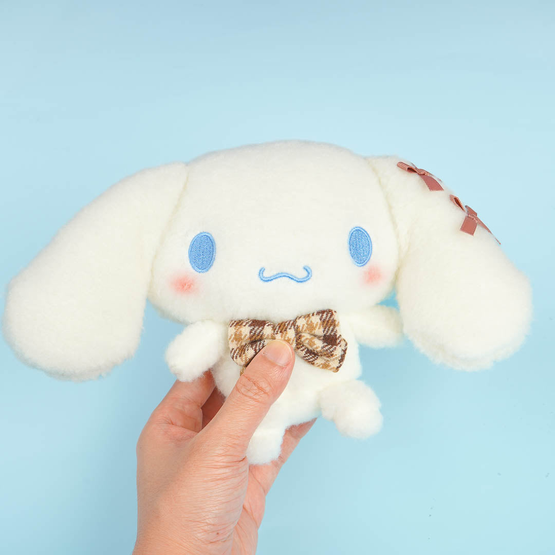 This medium-sized Cinnamoroll plushie looks super cute with its checkered bow tie! It features a mild mocha color and is made from soft and fluffy fabric.