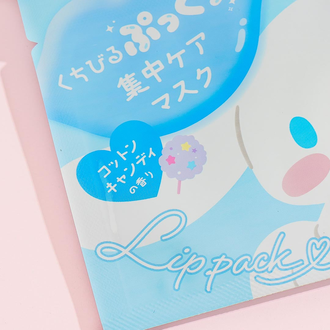 Get nice lips like Cinnamoroll by using this cute hydrogel lip mask pack. It showcases a print of a happy Cinnamoroll pointing at his own cute little lips! This intensive care mask made with hyaluronic acid and collagen keeps your lips nice and plump.