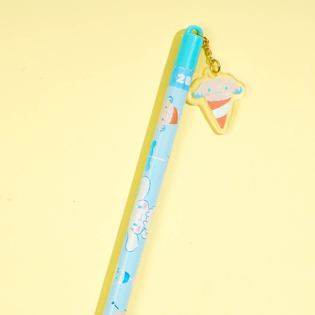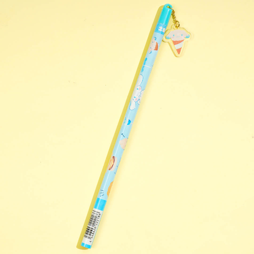 Use this super kawaii 2B pencil to write cute short stories and poems. It features prints of Cinnamoroll transformed into ice cream! This pencil also has a plastic charm showcasing ice cream Cinnamoroll.