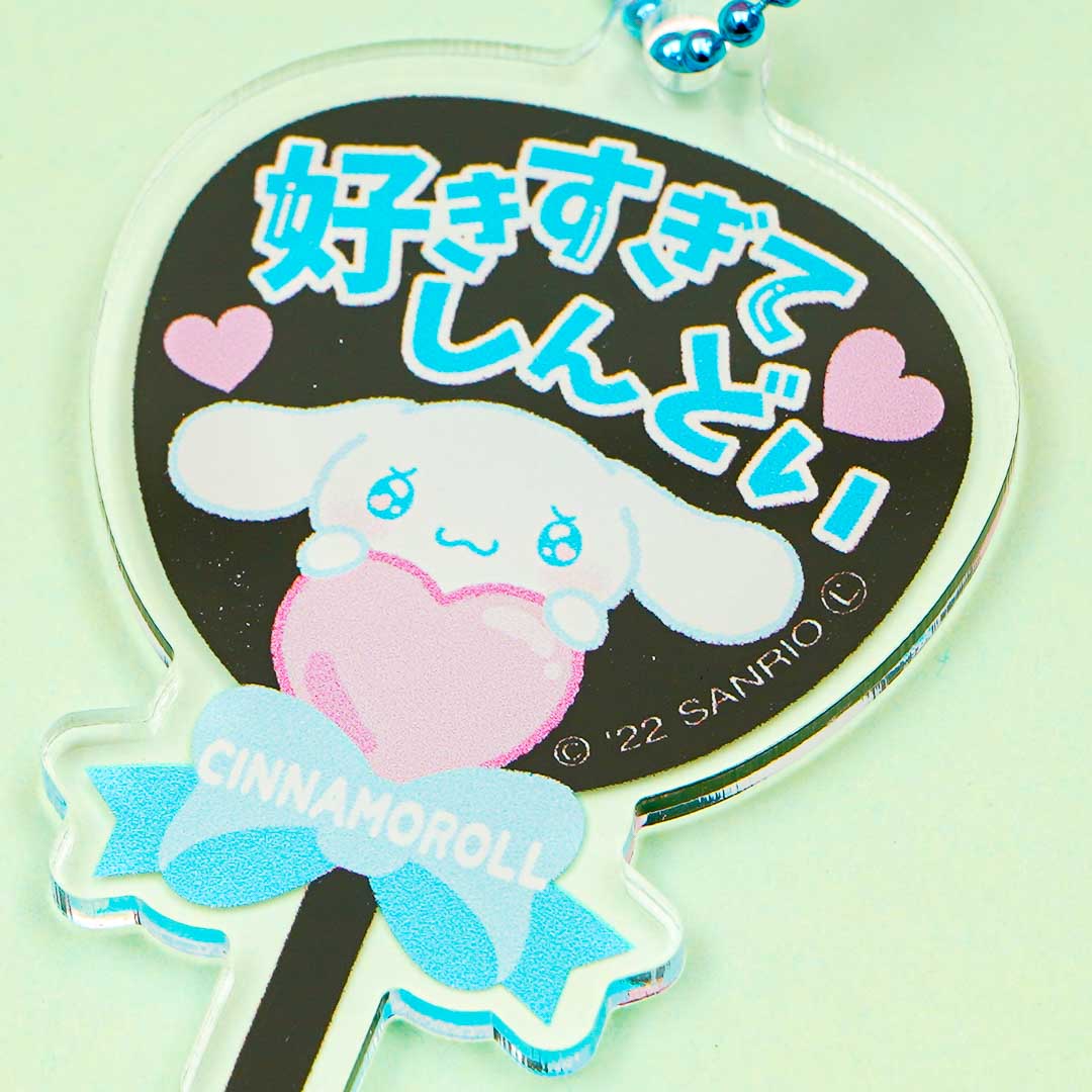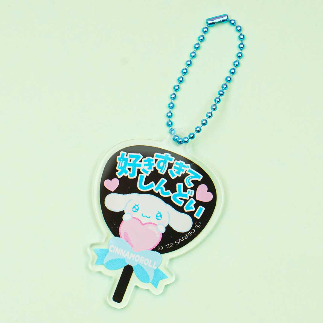 This cute Cinnamoroll charm shaped like a Japanese fan is the perfect addition to your kawaii collection. You can attach this cutie to your favorite bag with its detachable ball chain.