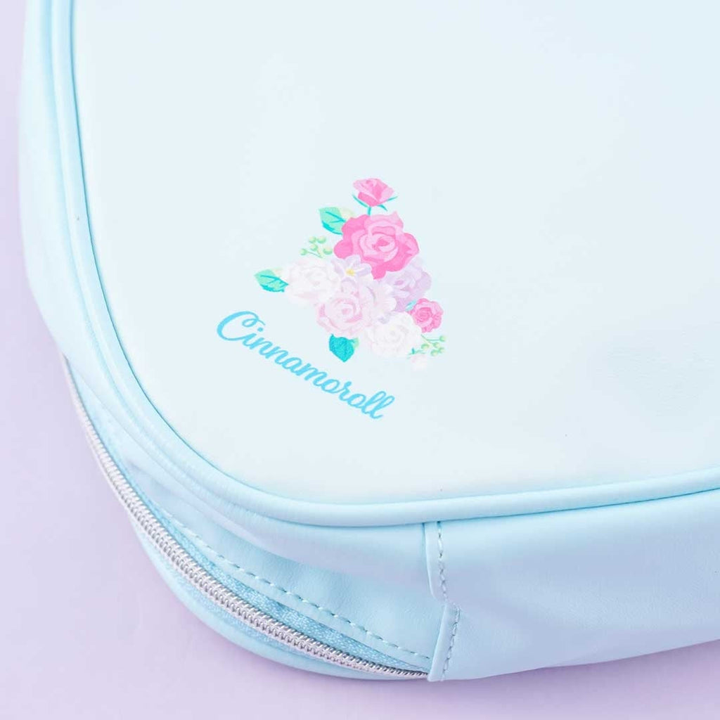 A cute vanity handbag illustrated with Cinnamoroll surrounded by flowers