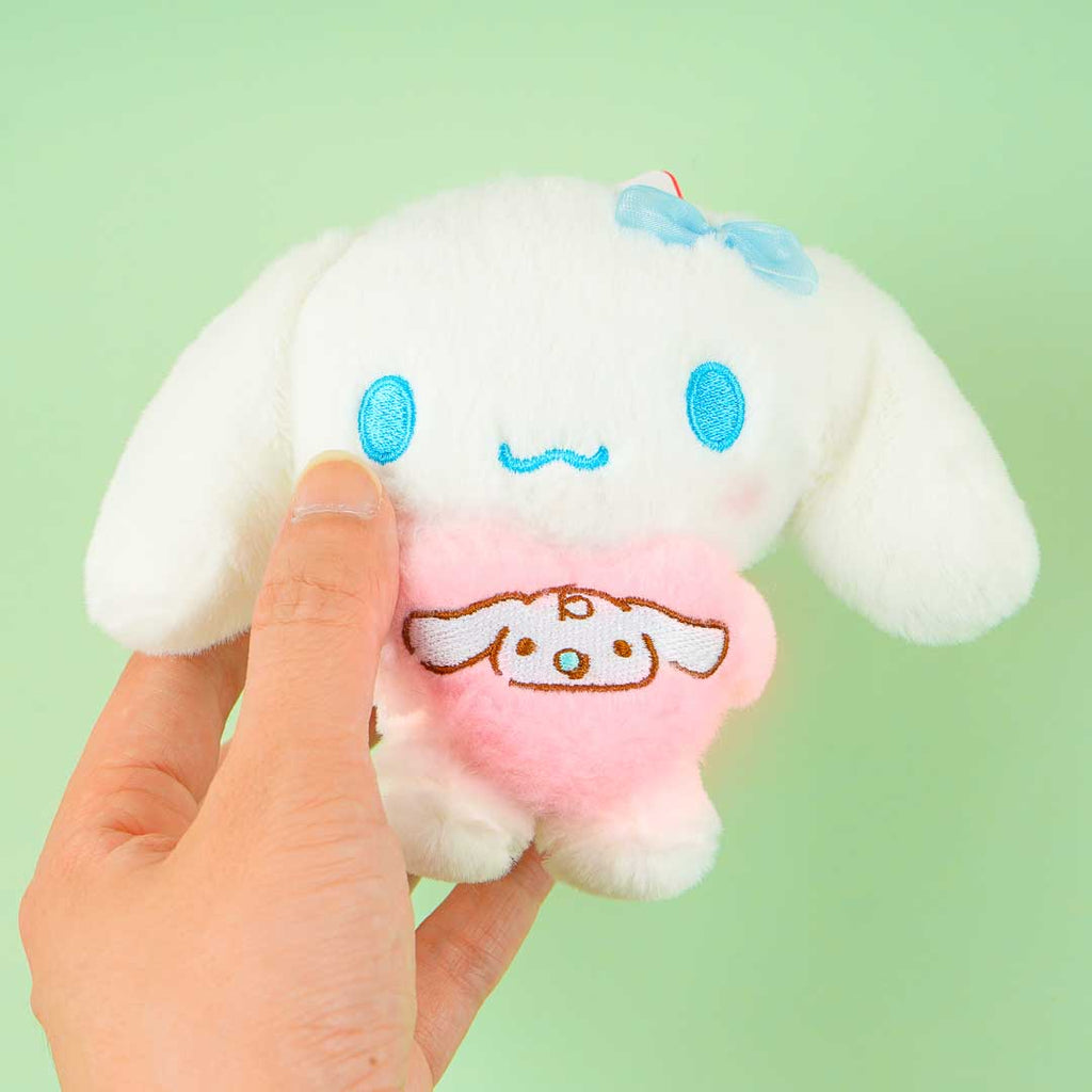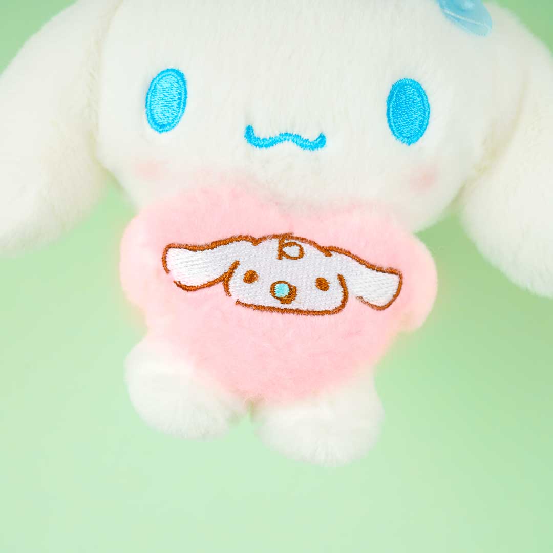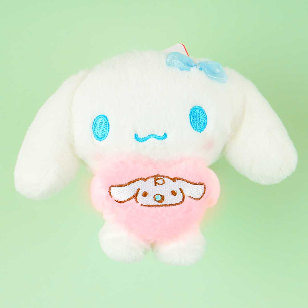 This kawaii Cinnamoroll plushie charm is holding a furry heart. Attach it to your school or work bag to add a dose of cuteness!