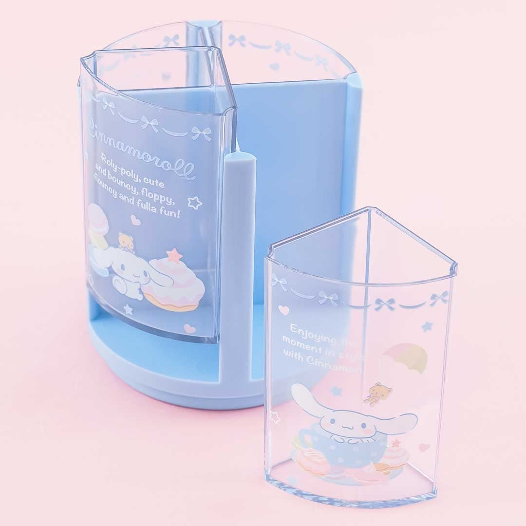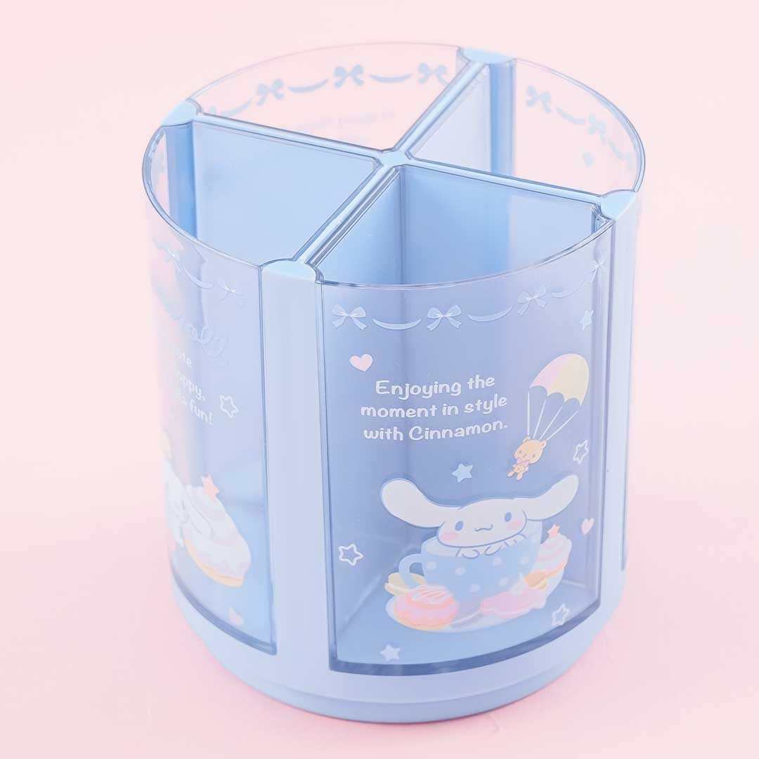Arrange your pens, pencils, and markers neatly by using this cute rotating pen stand. It's decorated with prints of Cinnamoroll playing with tasty treats! This pen stand has removable compartments so you can organize your things easily!