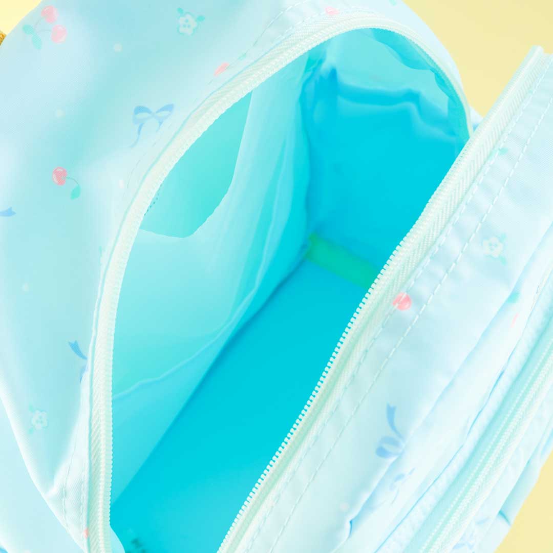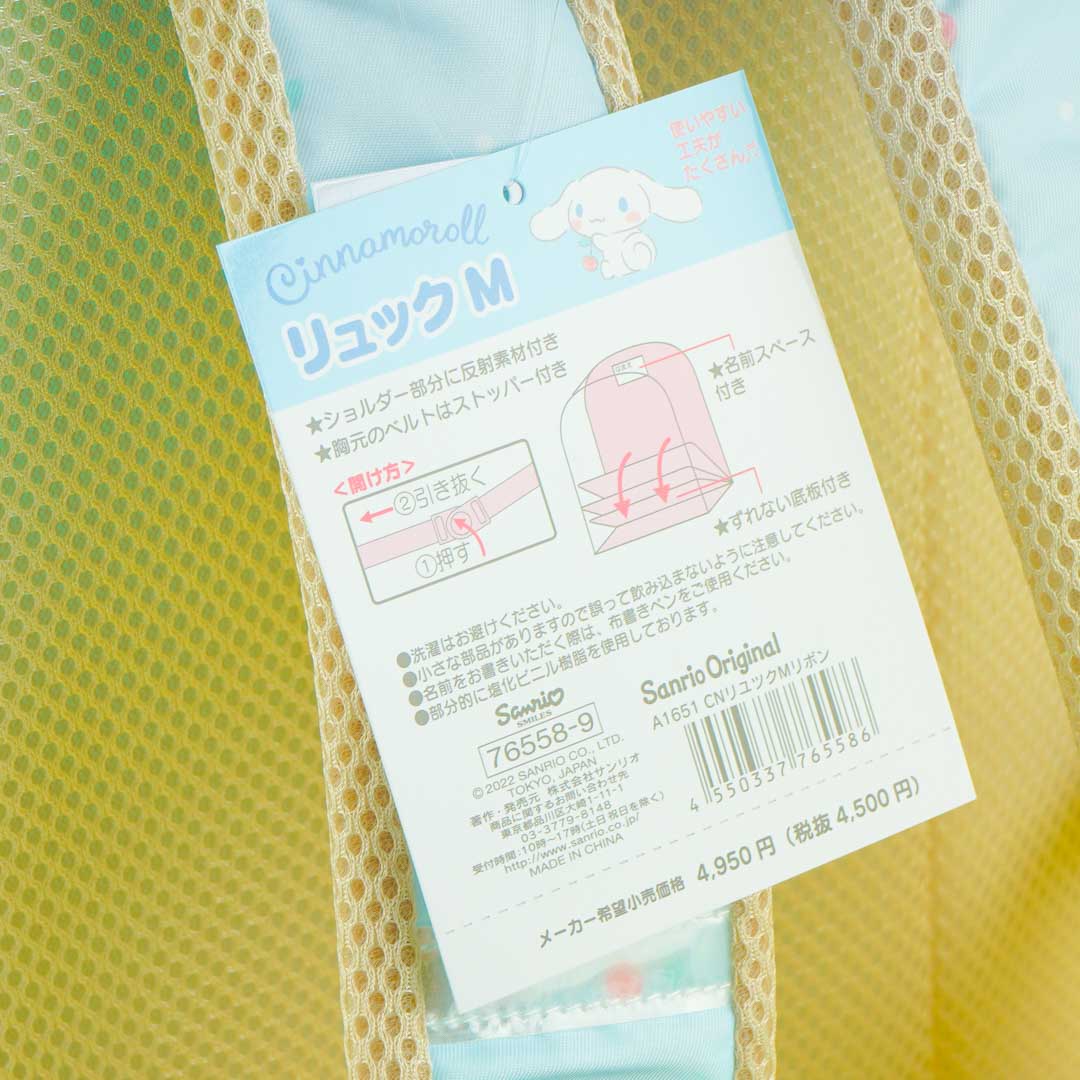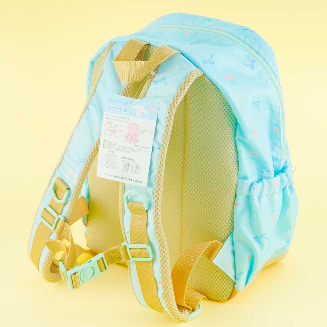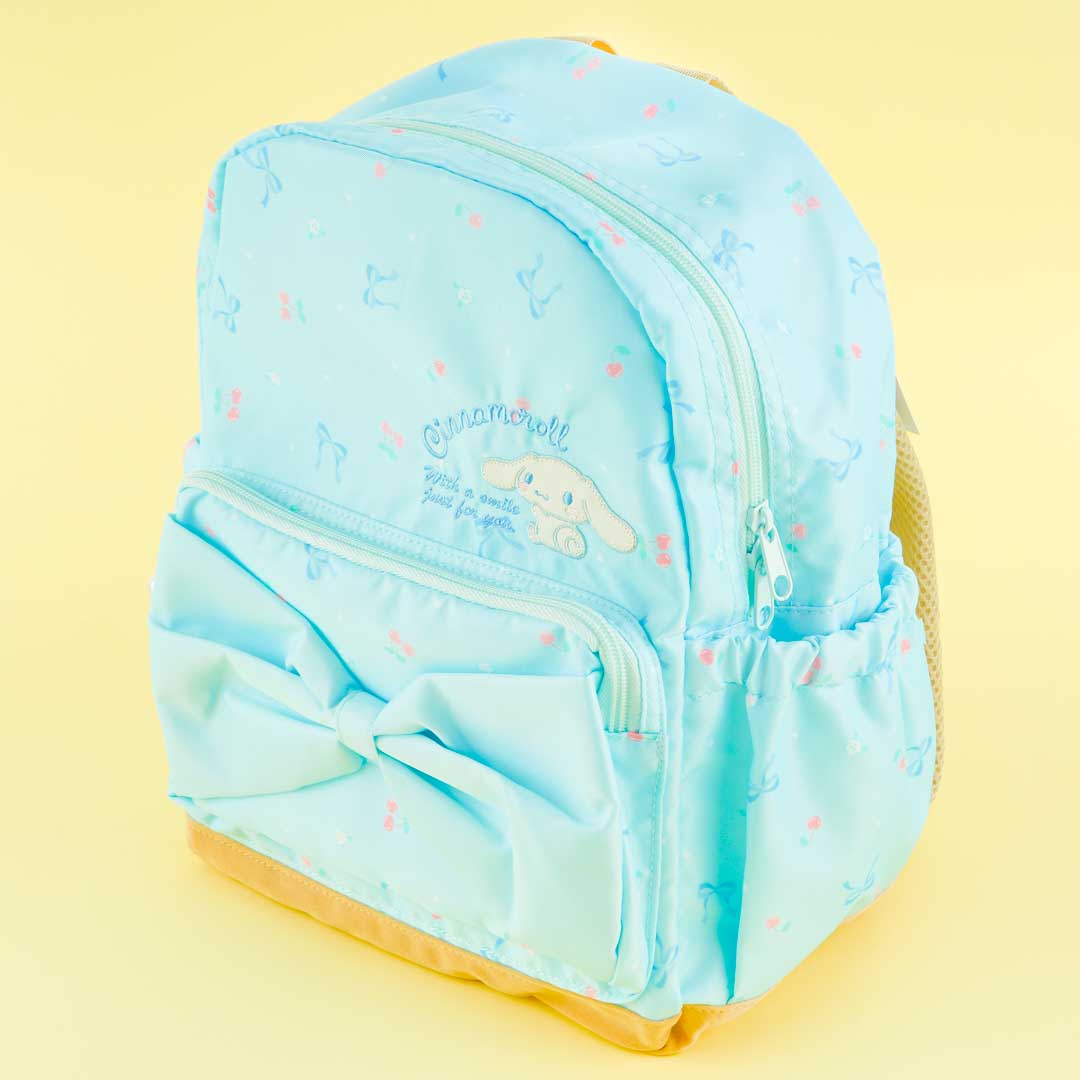 This sky-blue backpack has cute prints of Cinnamoroll, bows, and cherries! It’s also decorated with a huge ribbon attached to the front pocket. Bring this cute bag with you on your next trip!