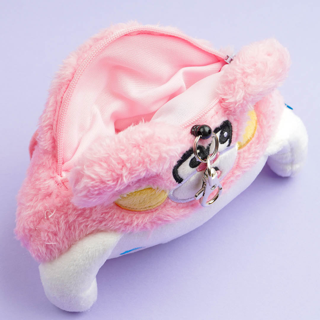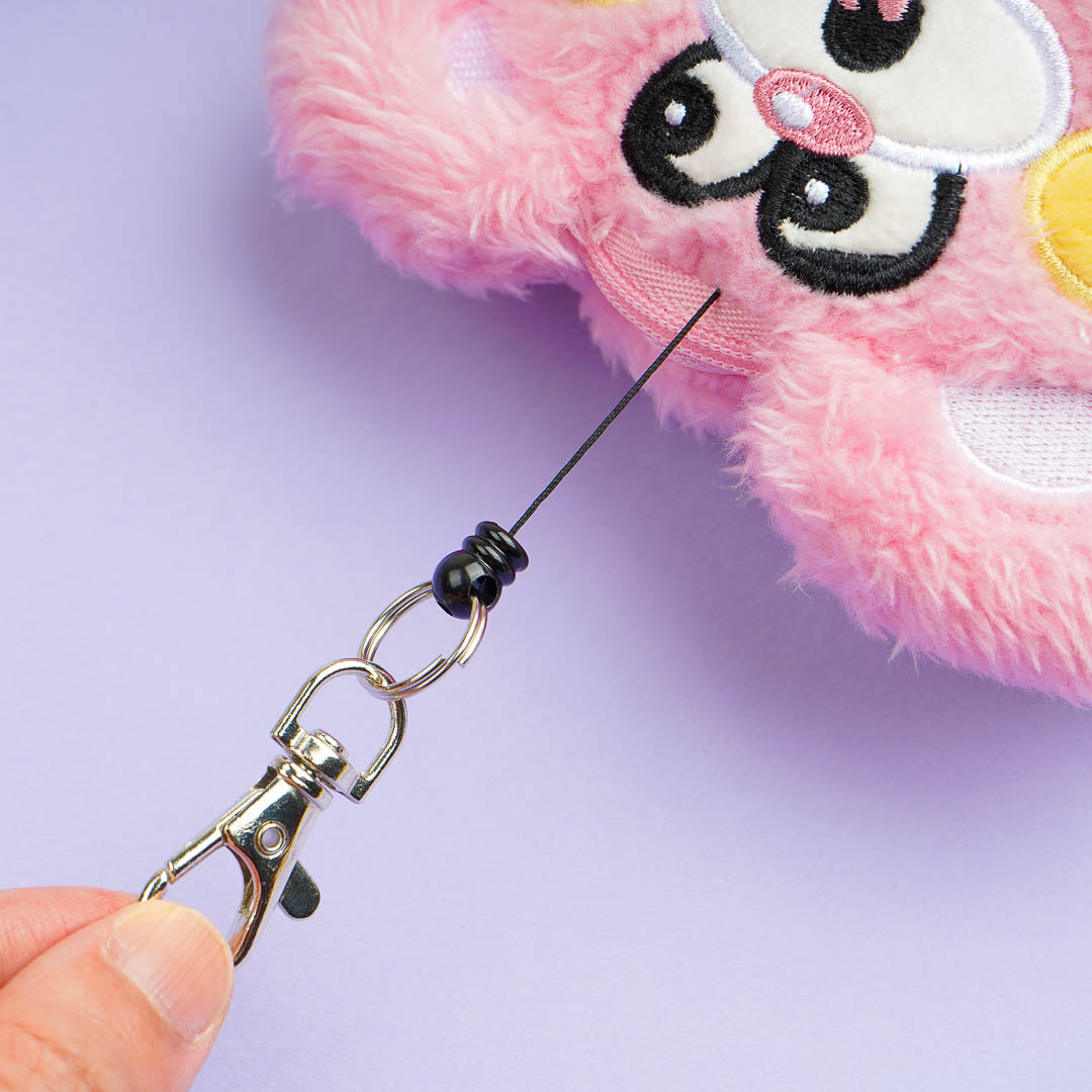 Bring along your ID card using this super cute Cinnamoroll pass case. This cutie is wearing a silly bear headpiece! It comes with a retractable reel so that you can pull it even when it's hooked to the bag.