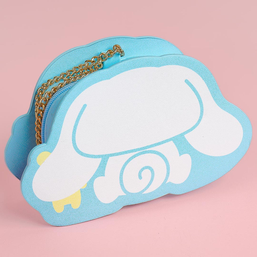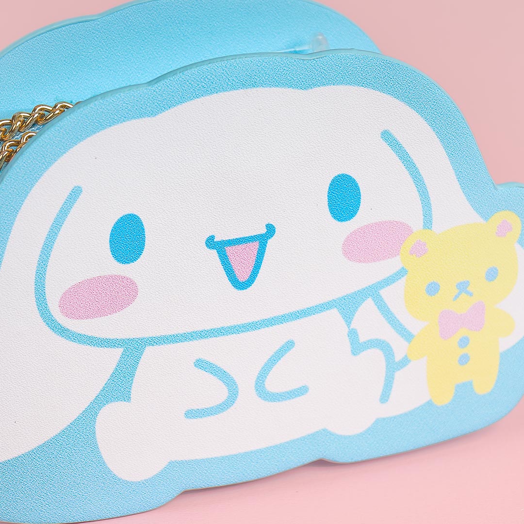 This kawaii pouch can stand on its own! You can use it as a decoration and a coin purse. It's illustrated with a cute die-cut design of Cinnamoroll and Tiny Chum.