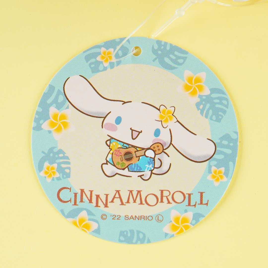 A kawaii Cinnamoroll plushie wearing a summer vacation outfit