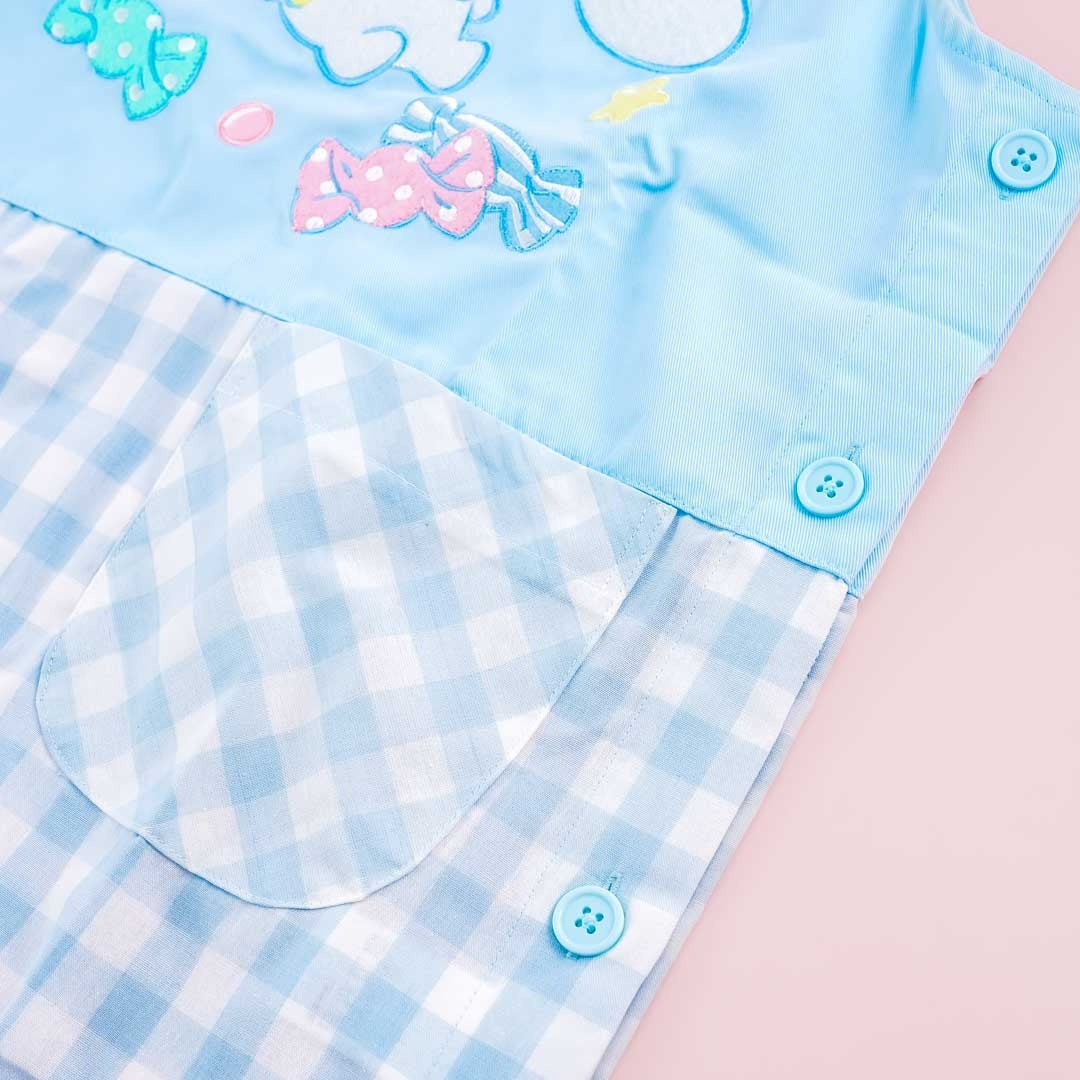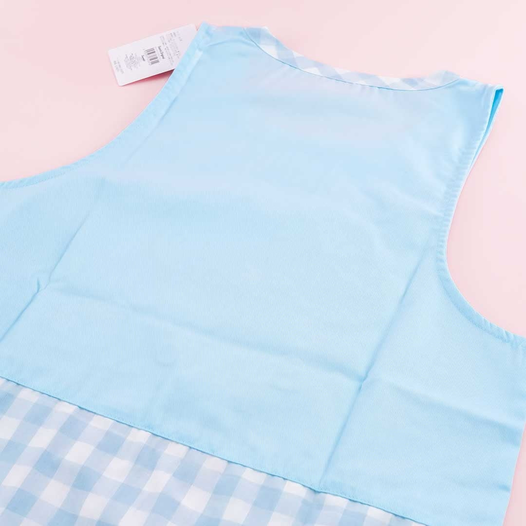 This super cute Japanese apron features an embroidered print of Cinnamoroll and his favorite sweet treats! It features a button closure on the side so you can easily put it on and has two small pockets on the front for your kitchen stuff.