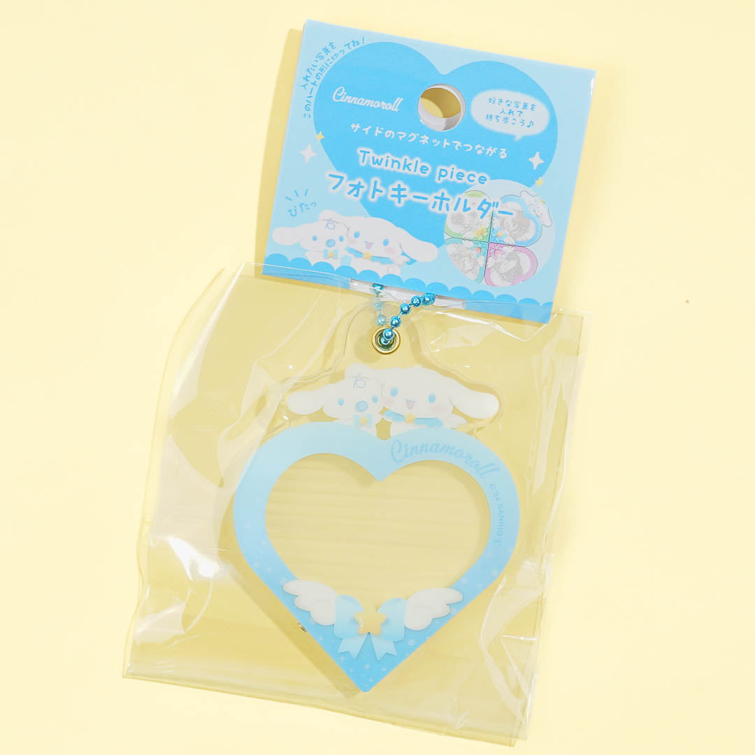 Kawaii-fy your bag with this cute heart-shaped photo charm. It's illustrated with Cinnamoroll and his friend Milk! This charm is magnetic so you can connect it to other charms in the Sanrio Twinkle Piece series.