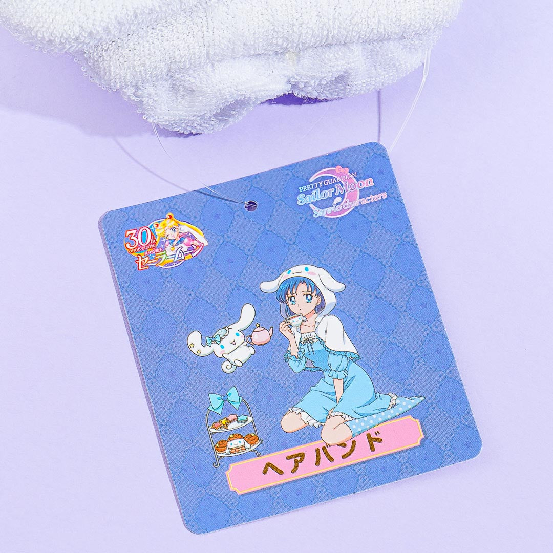This super cute headband is perfect for adding a dose of cuteness to your hair. The design features Cinnamoroll wearing Sailor Mercury's ribbon. It's made from soft and fluffy fabric that's super comfy to wear.