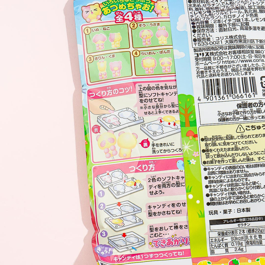 Have fun creating different animal-shaped confections using this DIY kit! The set includes strawberry and lemon soft candies that you can turn into various shapes using the included mold. You can even mount these yummy treats on sticks!