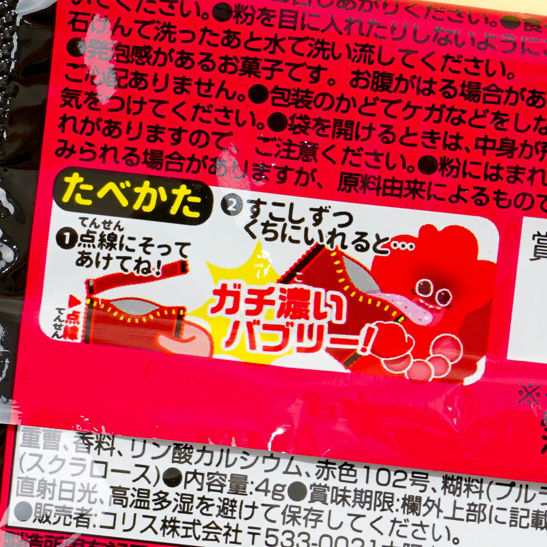 Eat this powdered candy and watch your tongue turn bright red! This cola-flavored candy is perfect for a fun afternoon treat!