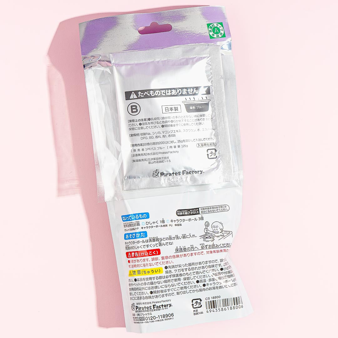 Have fun in the bath with this pack of aquamarine-scented bath salt! It contains a plastic ladle and balls featuring the characters from Crayon Shin-Chan. Use the ladle to scoop up the balls while in the tub!
