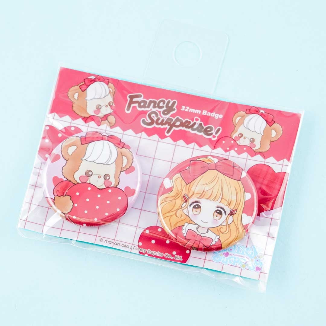This cute set of badges features prints of a bear with a heart balloon and a girl wearing a kawaii dress! Use these badges to decorate your favorite bag or denim jacket!