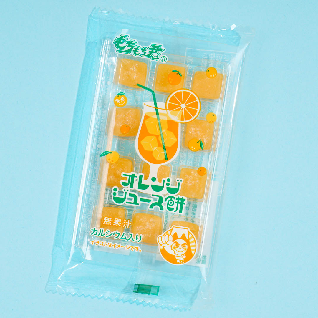 Mochi is a traditional chewy Japanese treat made from glutinous rice ball. This pack of candies have the same sticky texture as mochi! Enjoy the taste of orange juice with every candy piece. You can use the toothpick inside the pack to eat them one by one.