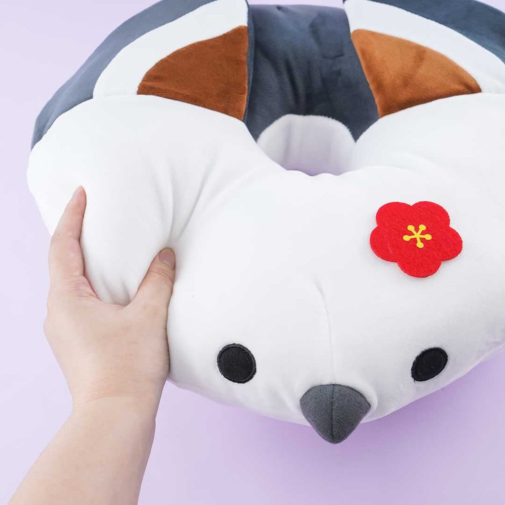 Add this kawaii donut-shaped cushion to your collection! It’s made of super-soft material and features Shimawe from the Fuku-Fuku Shimaenaga — a series about long-tailed bird characters by Amuse.