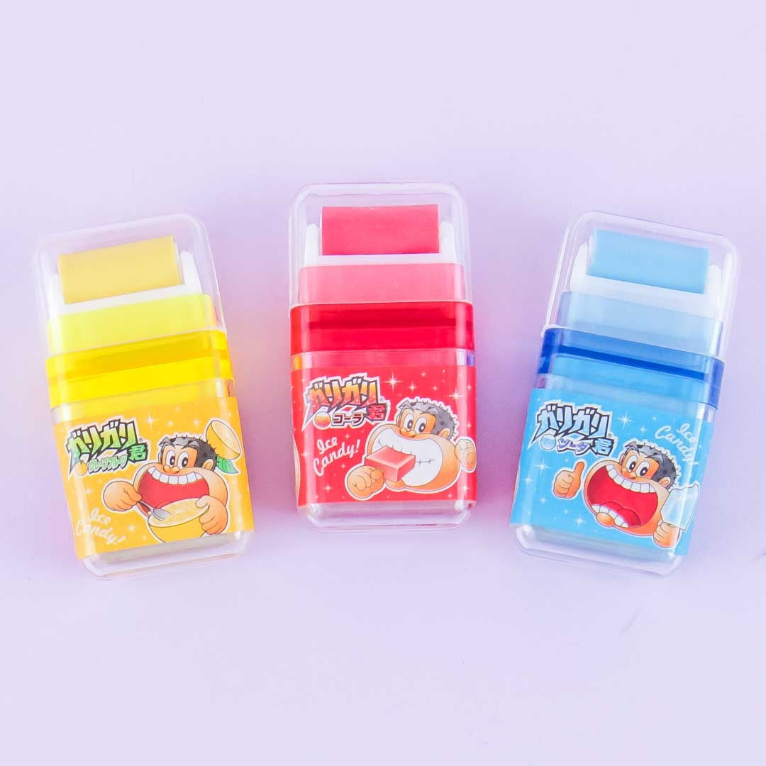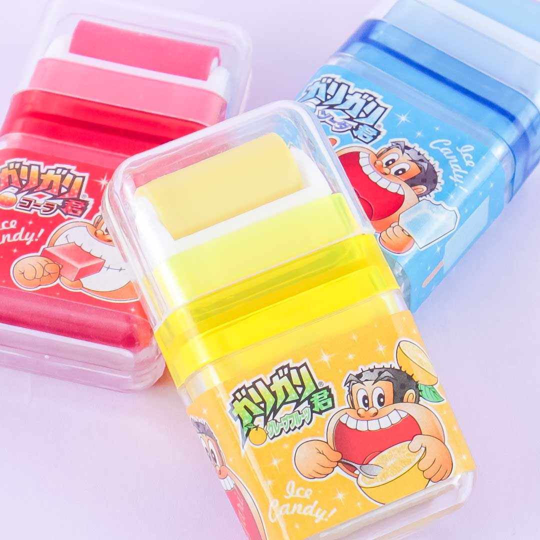 This kawaii eraser resembles the packaging of Gari Gari Kun popsicle! Use it to remove mistakes and flip it on the other side to pick up eraser dust with the use of the built-in roller. Make sure to empty the eraser dust bin once you’re done.