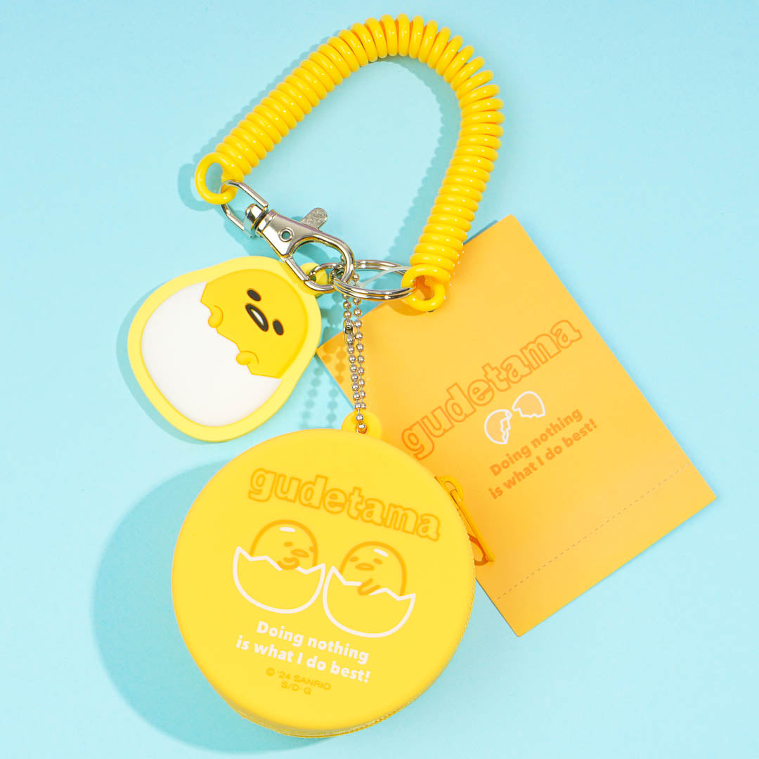 Always have your favorite mints on hand by placing them inside this kawaii macaron-shaped mini case! It features a cute illustration of Gudetama in an eggshell plus a matching character rubber charm.