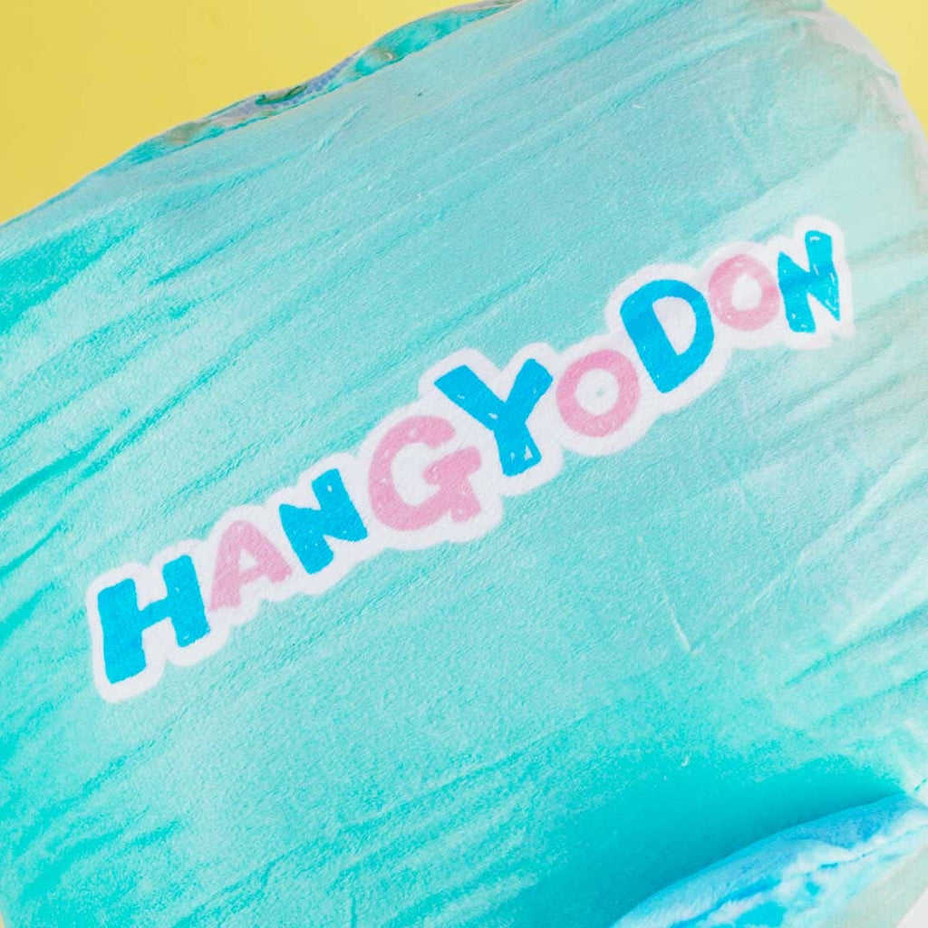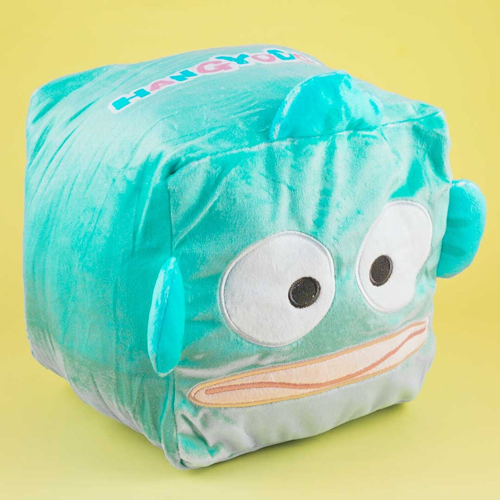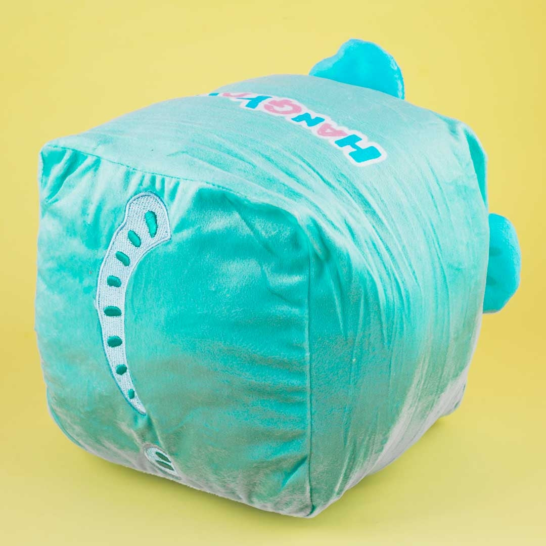 Have a nice long nap as you use this 3D cube-shaped Hangyodon cushion. Hangyodon's face and tail have cute embroidery details. It also has a print that says "Hangyodon" on its top side.