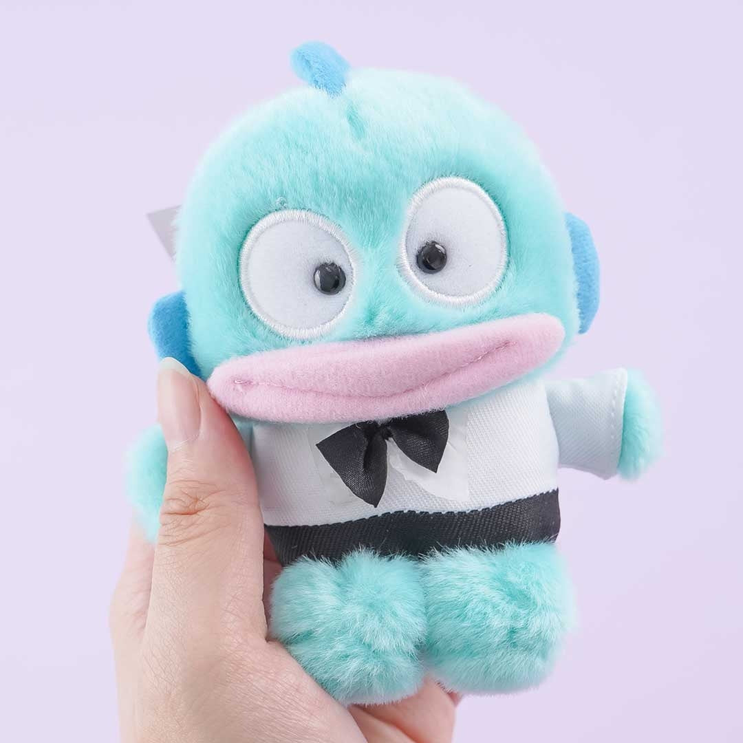 Use this super kawaii Hangyodon plushie to decorate your bag! This medium-sized cutie has a bow tie around its neck. It comes with a detachable ball chain and a heart-shaped charm.
