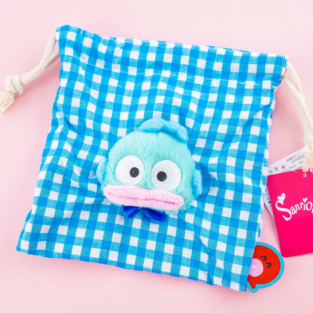 This pull-string bag has a fluffy decor featuring Hangyodon. It also has a Sayuri patch design on the side and is made of soft polyester. Use this super cute pouch to store and organize your gadget accessories such as earphones and charger.