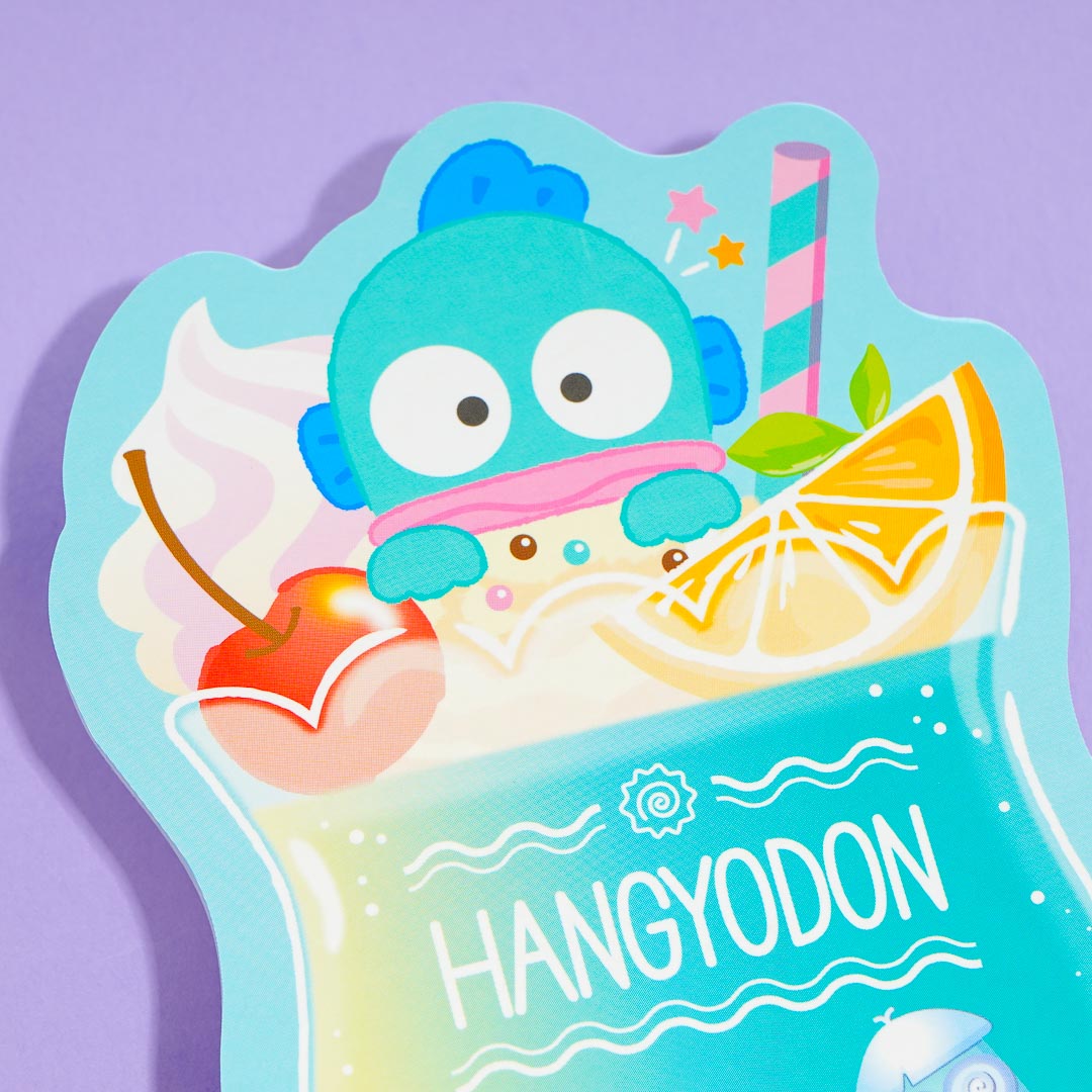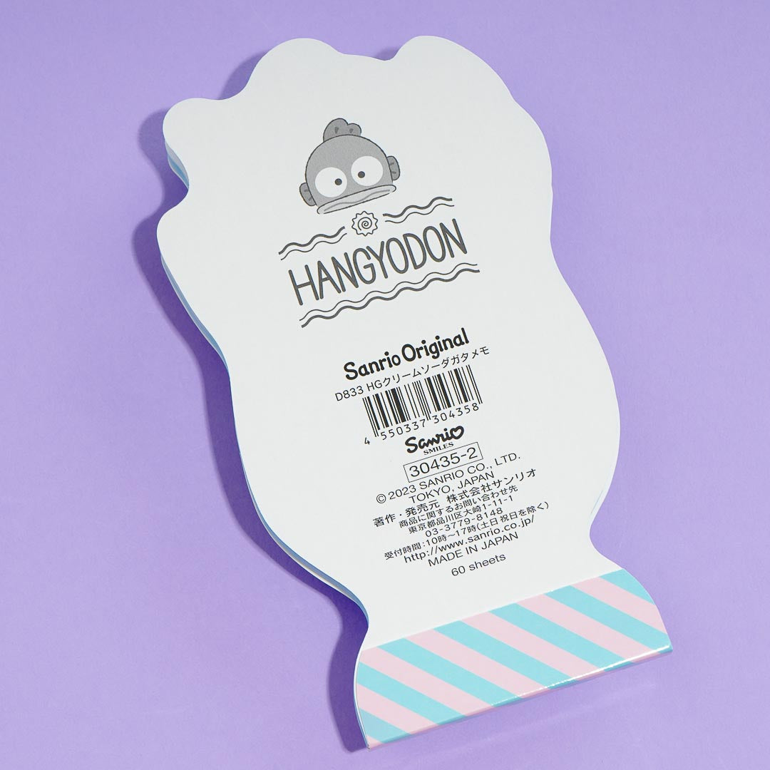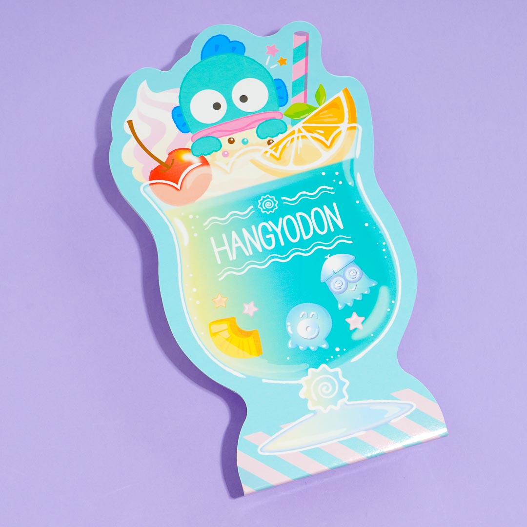 Write important reminders using this cute die-cut memo pad! It features prints of Hangyodon enjoying a huge glass of cream soda.