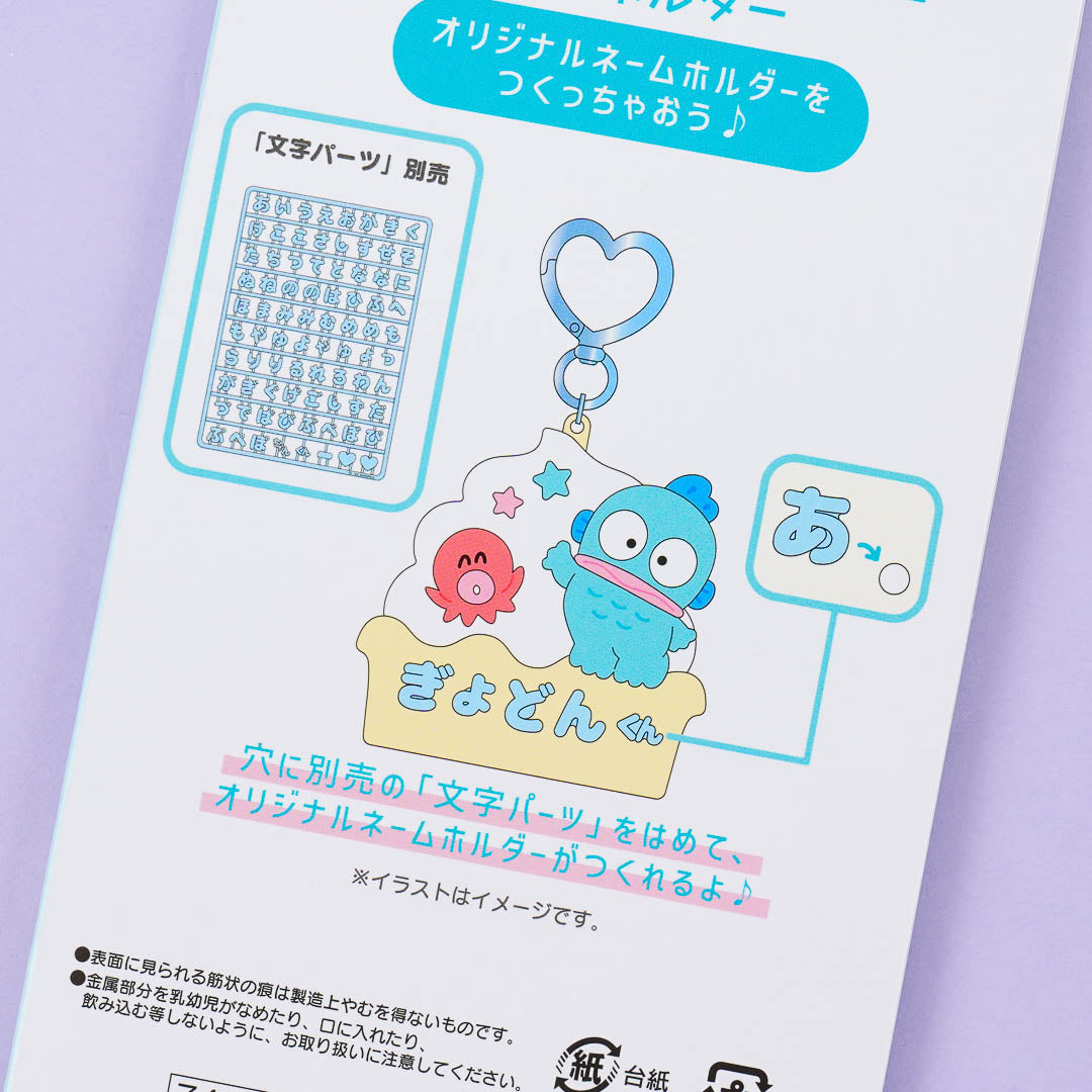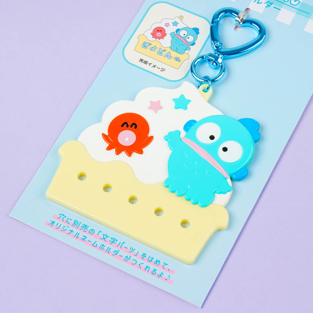 This kawaii keychain lets you customize it using cute hiragana decors! The charm features Hangyodon and Sayuri submerged in the icing of a cupcake. You can spell out your favorite character's name or use a cute Japanese phrase before attaching it to your bag or purse.