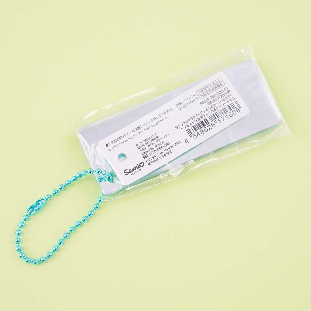 This super cute mini charm features a print of Hangyodon with Pochacco and Tuxedosam. It has a mirror at the back that you can use to check out your makeup! Attach it to your favorite bag with its removable ball chain.