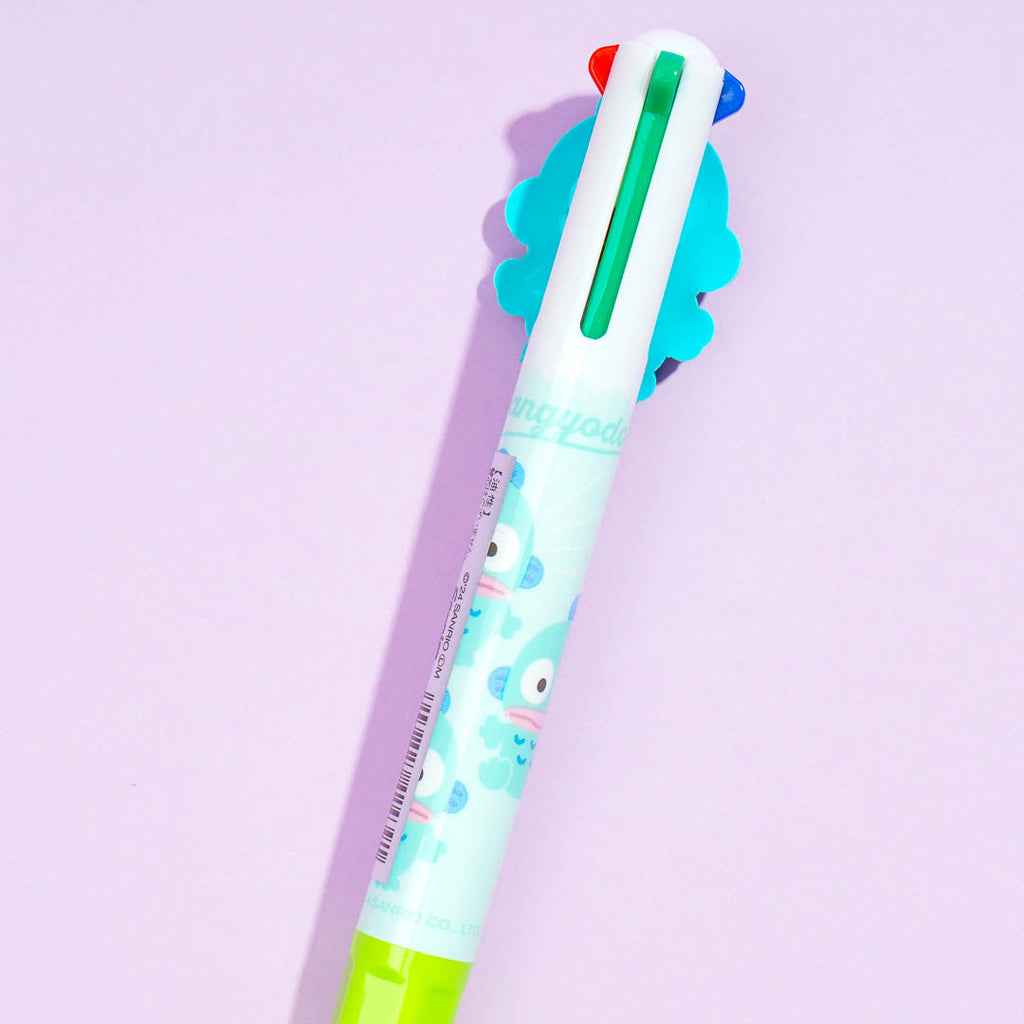 This special ballpoint pen is decorated with a super cute Hangyodon rubber charm! Use this pen to create calligraphy on letters and invitations, as you can easily switch from any of the four ink colors with a simple click.