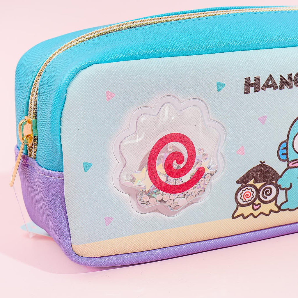 Organize your pens and other writing tools inside this cute soft pencil case made of synthetic leather! This zippered pouch is decorated with cute prints of Hangyodon and his friends. There's a cute clear capsule in front with sequins you can shake!