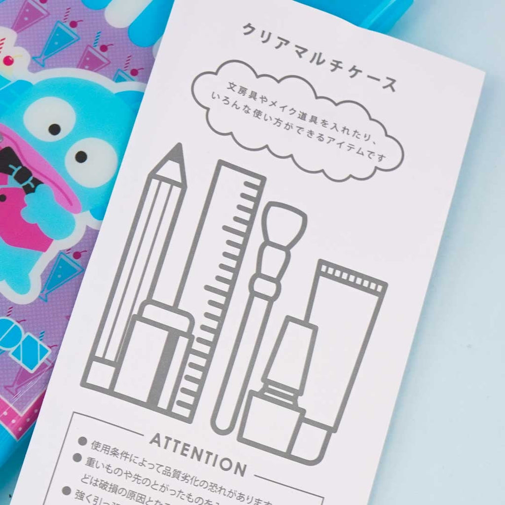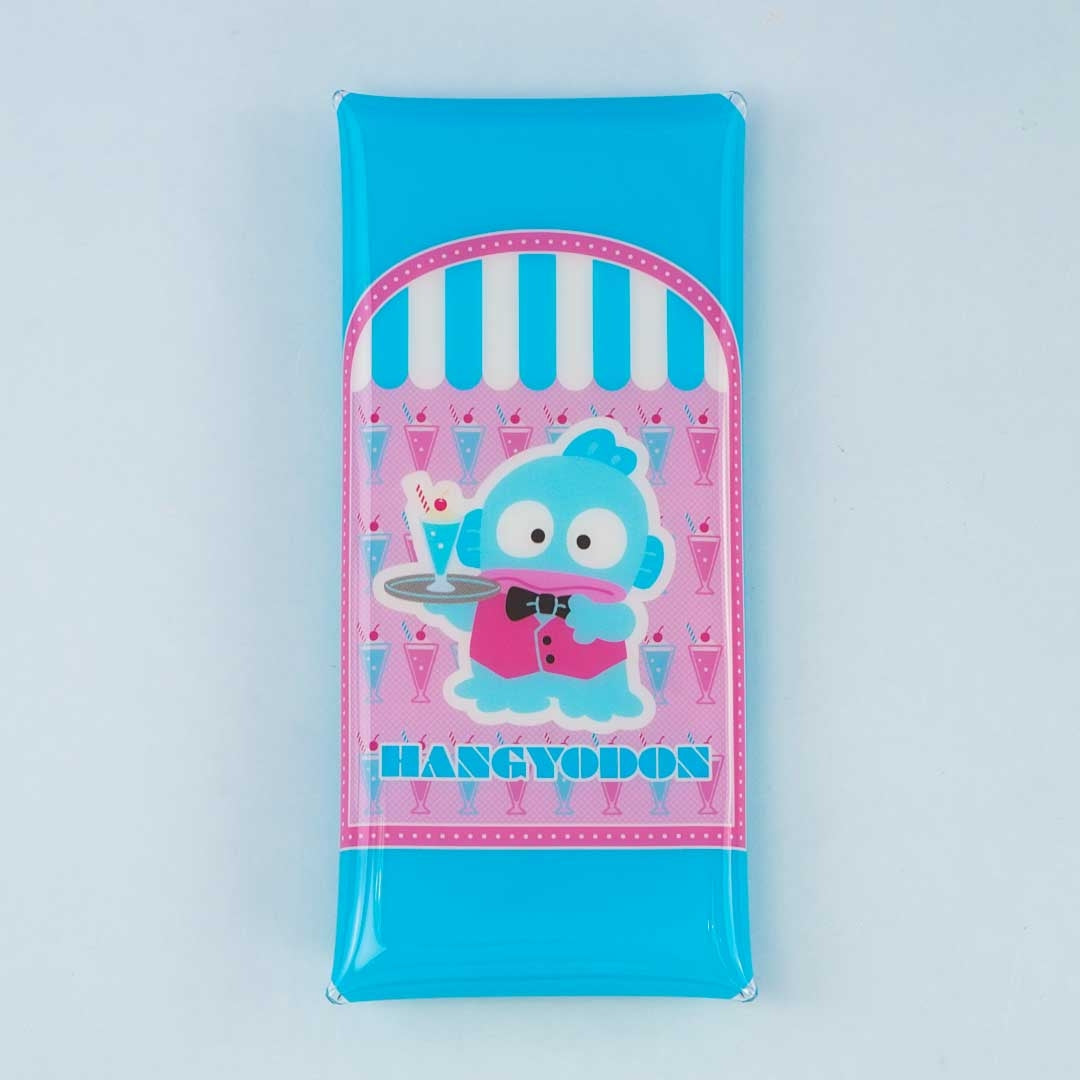 Enjoy organizing your fave makeup brushes inside this clear plastic case! It’s decorated with a vintage-inspired illustration of Hangyodon serving cream sodas! This convenient blue case has dual snap button closures.