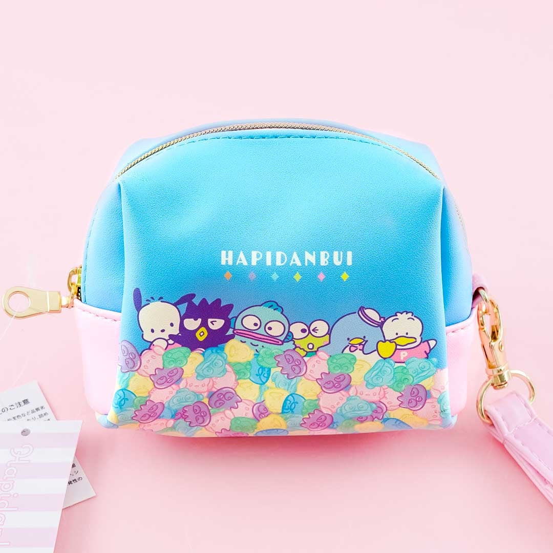 • A kawaii mini pouch illustrated with Hapidanbui characters with gummies of themselves