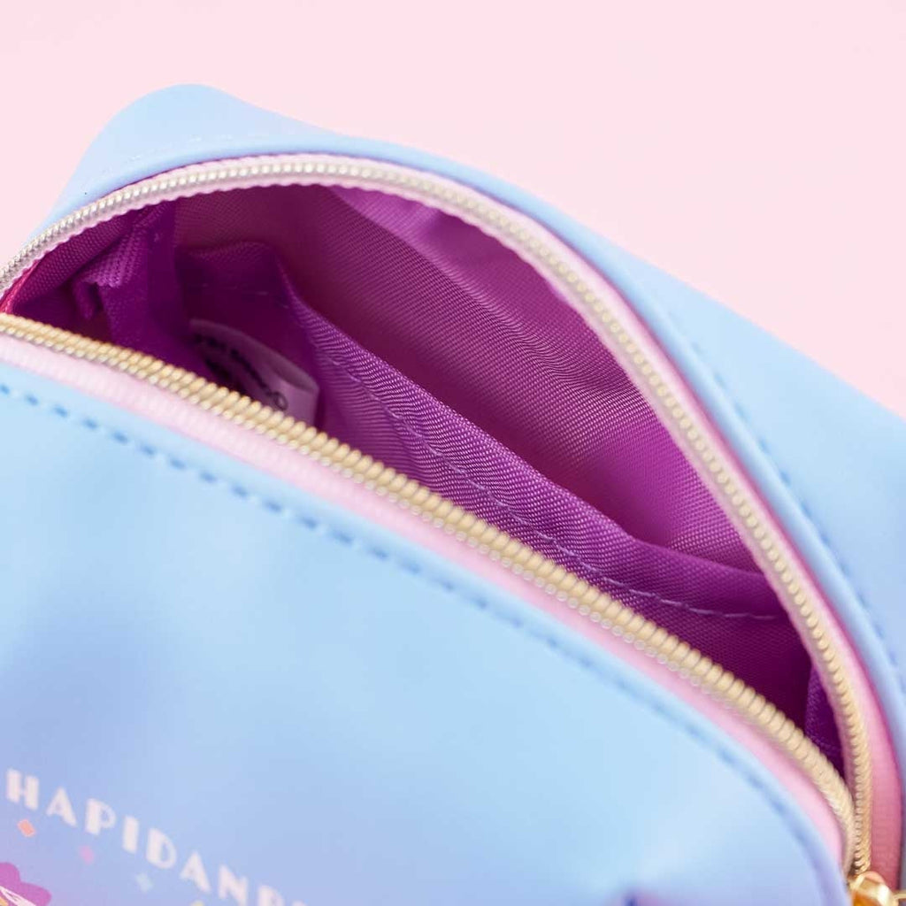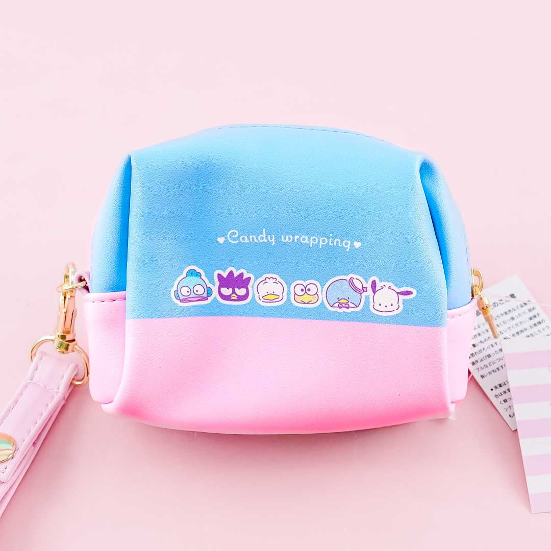 This cute mini pouch features prints of the Hapidanbui buddies with gummies of themselves! Use it to carry your small makeup items and other trinkets. It has a zipper closure and a removable strap!