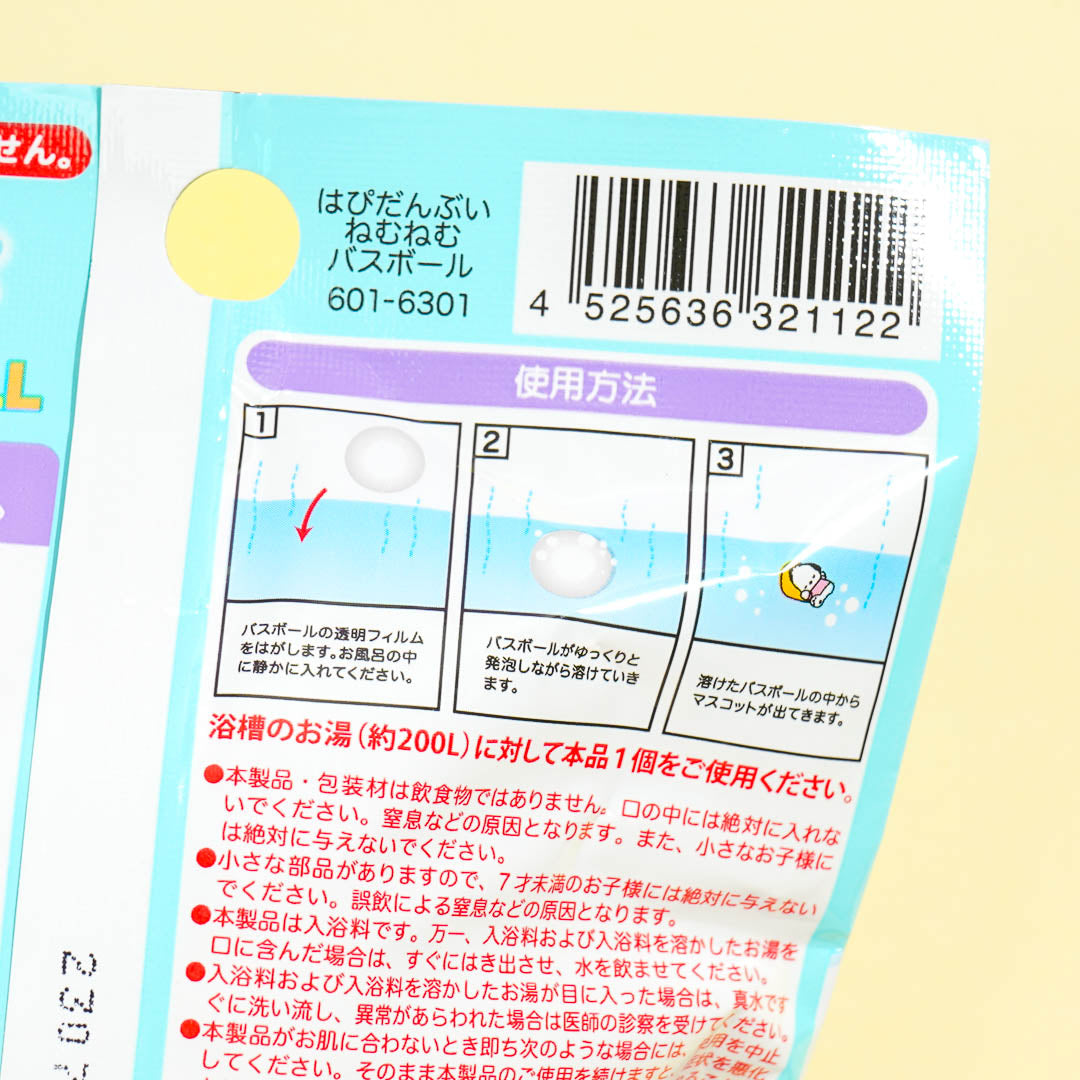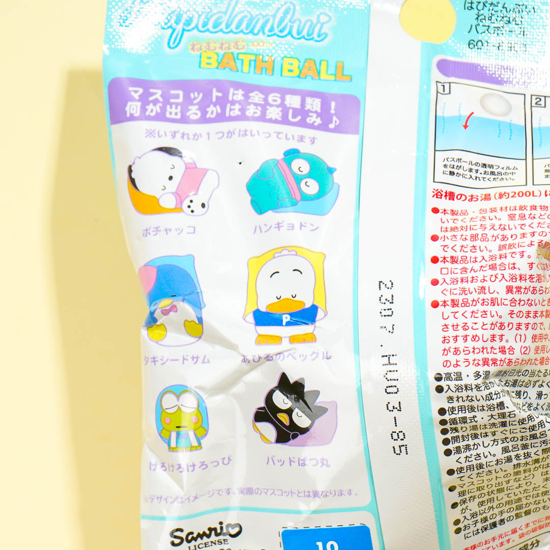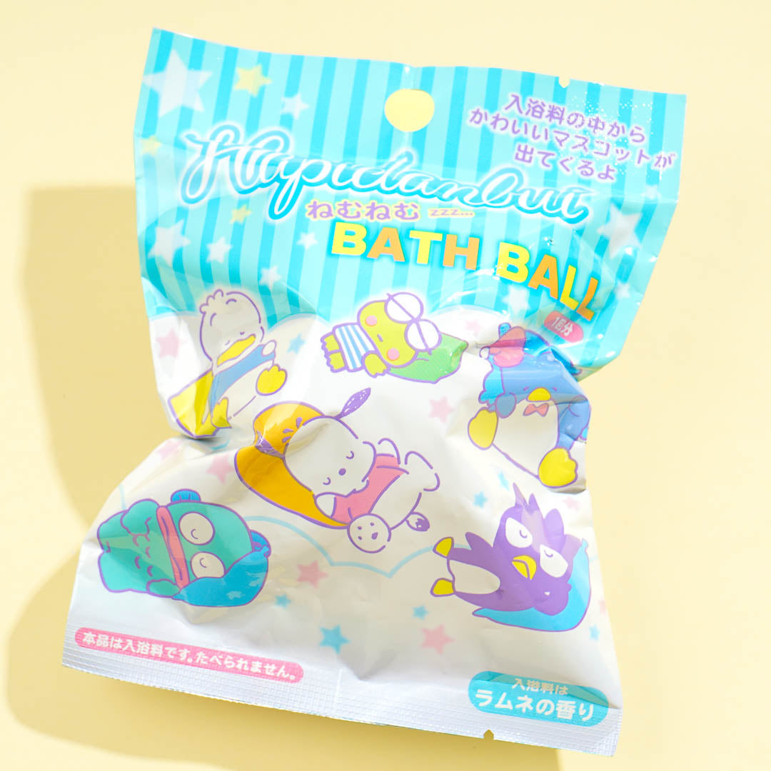 Take this bath ball with you to the bath! A Hapidanbui cutie is going to come out of the bath ball once it dissolves in the water. Surprise yourself with a random member of the Hapidanbui! This bath ball has a lovely ramune (Japanese carbonated softdrink) scent.