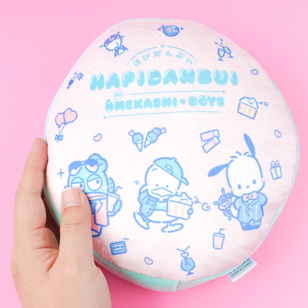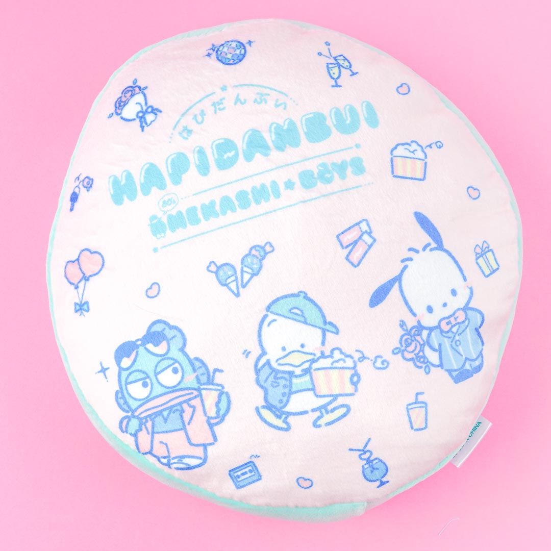 Sleep comfortably while you hug this kawaii round cushion! This mini pillow is decorated with prints of the members of Sanrio’s boyband, Hapidabui — all dressed up! The special design is created by Japanese illustrator F*Kaori for Sanrio.