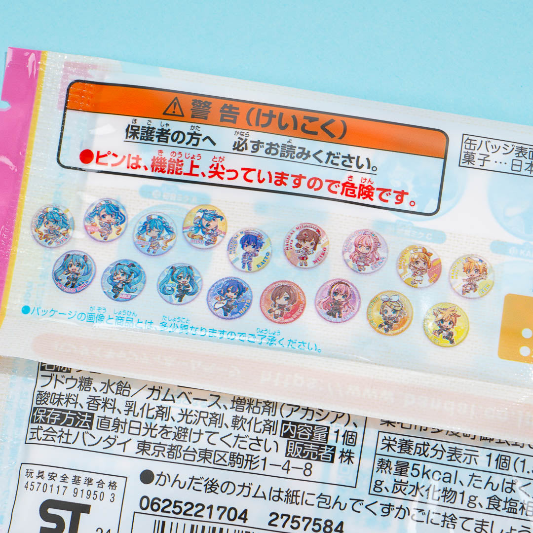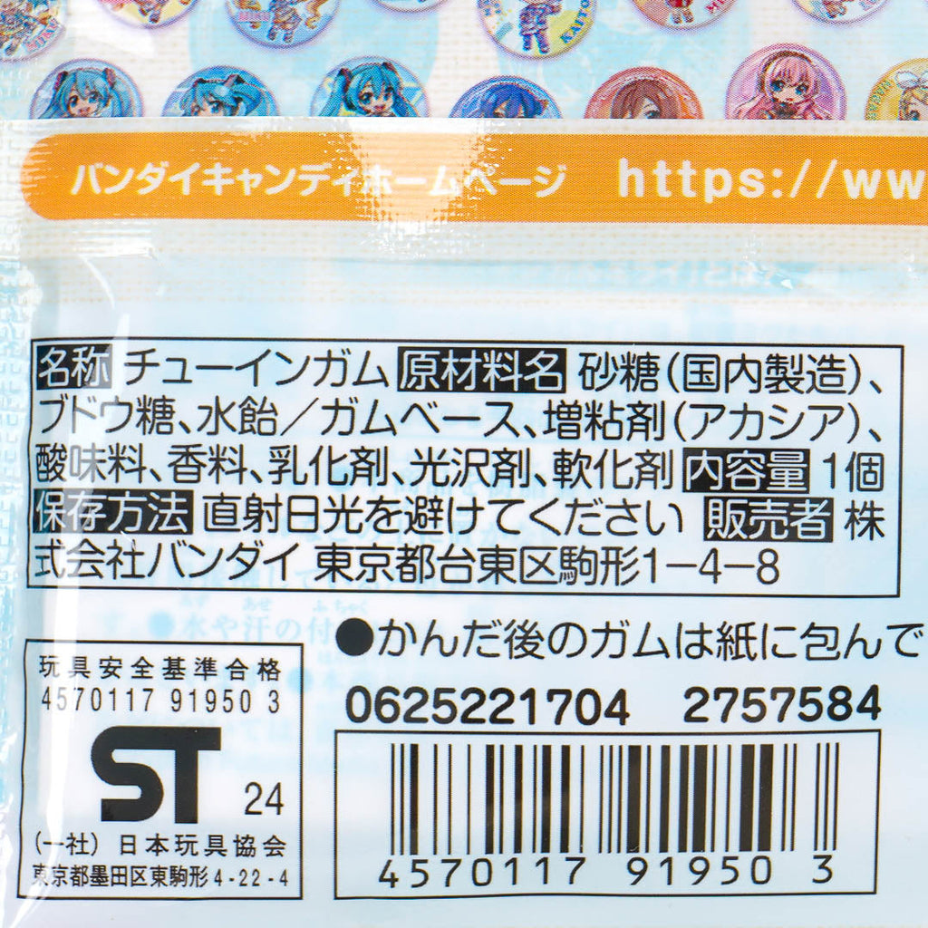 Kawaii-fy your bag with this super cute can badge! It features illustrations of Hatsune Miku and other Piapro characters with the Magical Mirai theme. Try to collect all 17 designs and trade with your friends! This pack even includes a piece of soda-flavored gum for you to enjoy.