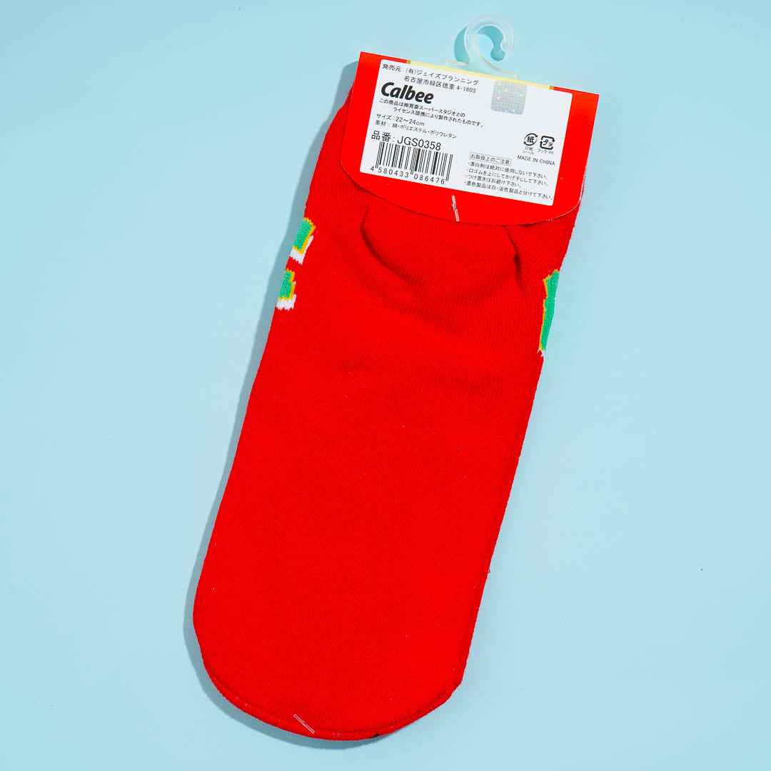 Wear this cute pair of socks with your sneakers to complete your kawaii outfit! It features a cute print of the giraffe from Jagariko Cheese potato snack.