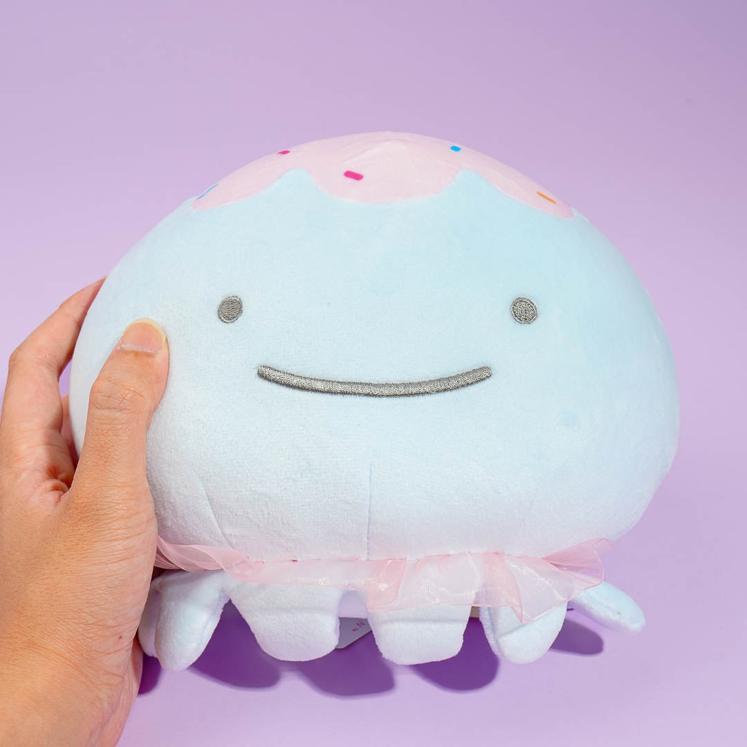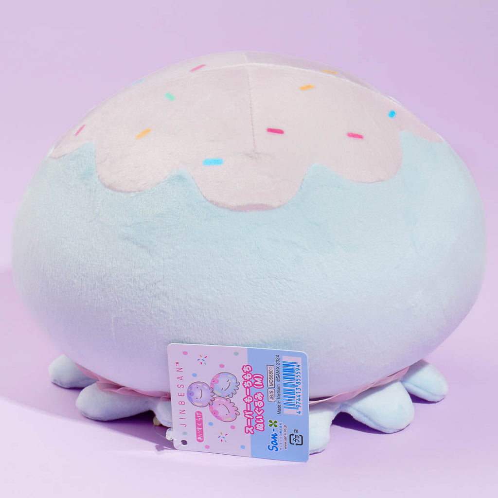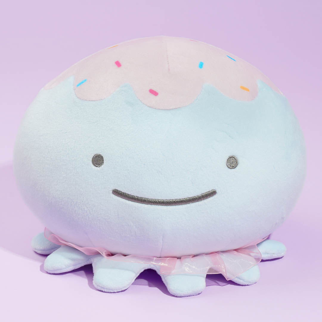 Kawaii-fy your bed in an instant by placing this cute smiling jellyfish plushie! It comes from the “Jinbesan & Icekurage” collection wherein Jinbesan meets a new set of friends that look like ice cream from Antarctica. This medium-sized Daiou Icekurage plushie is also decorated with pink sauce and candy sprinkles on its head!