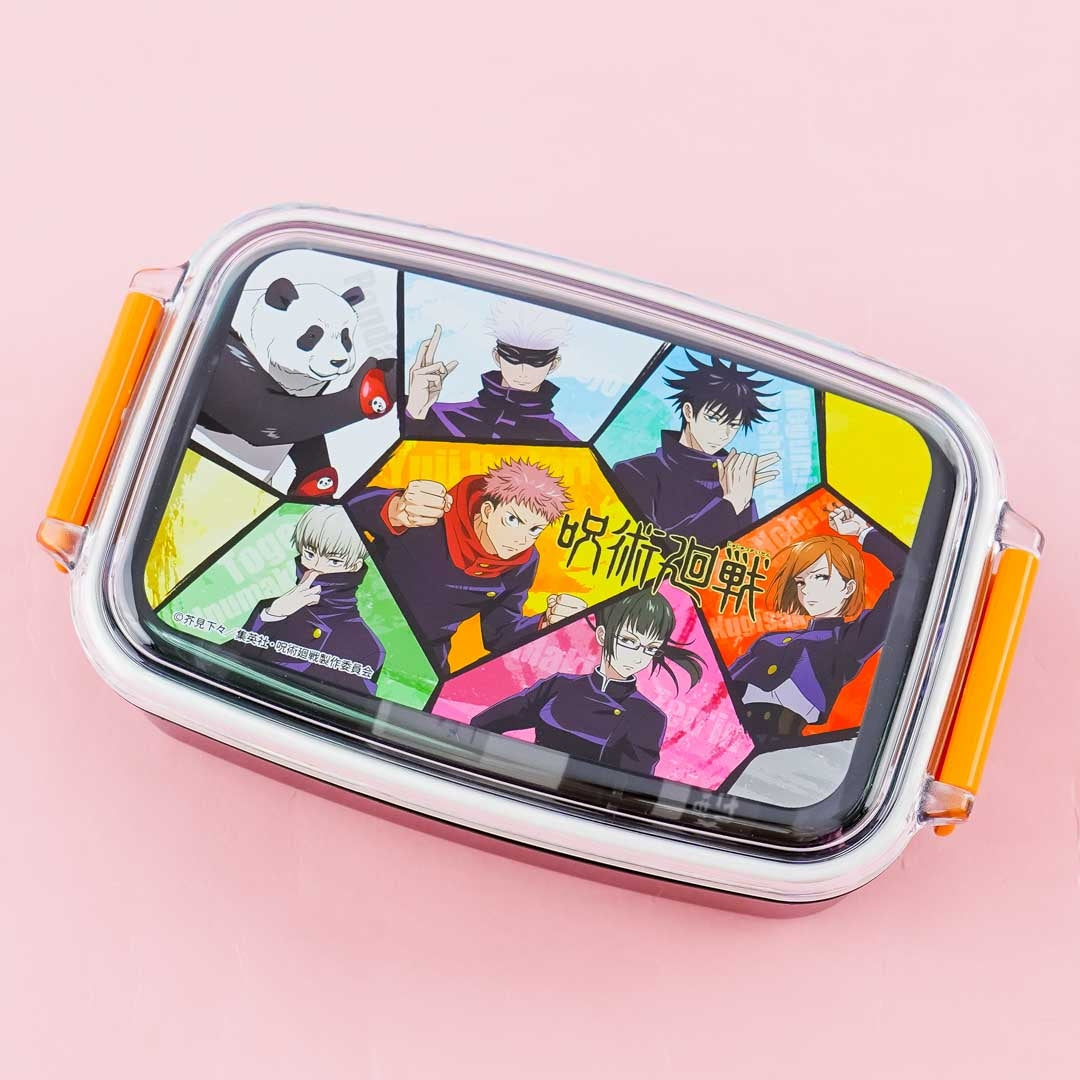 • A rectangular lunchbox set featuring an illustration of the lead characters of Jujutsu Kaisen